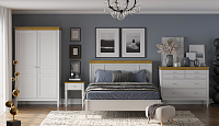 Эта коллекция мебели оформлена под старину. Массивные детали, простые практичные формы, надежная фурнитура. Большая часть предметов сделана из массива дерева, преимущественно белорусской сосны. Отделка сведена к минимуму или используется натуральный шпон, чтобы мебель слегка наполняла комнаты запахом свежего дерева. Легкий аромат придает естественности интерьеру, вызывает положительные эмоции, настраивает на позитив во время сна и пробуждения.