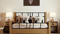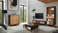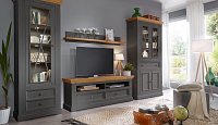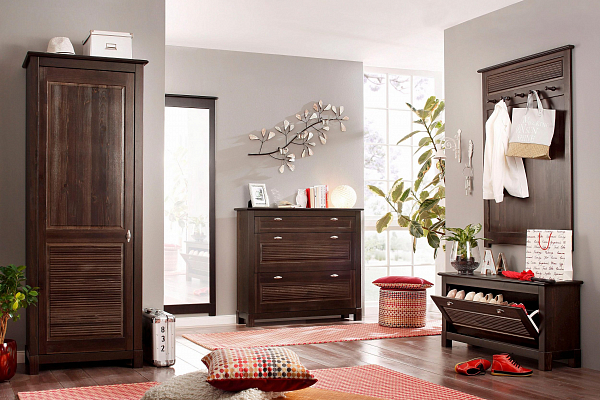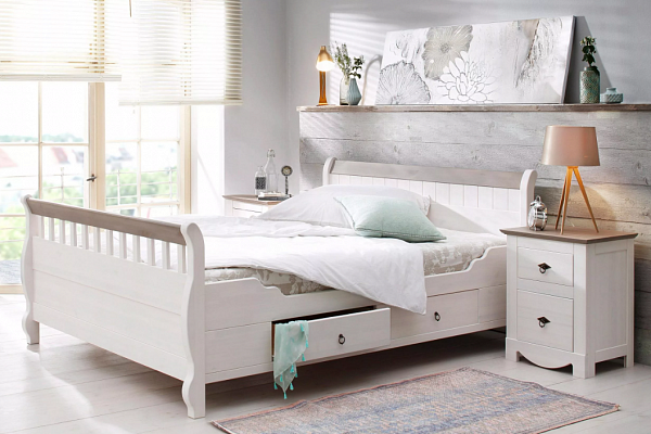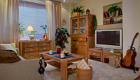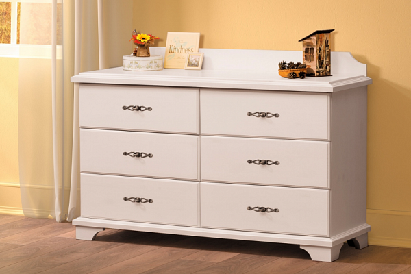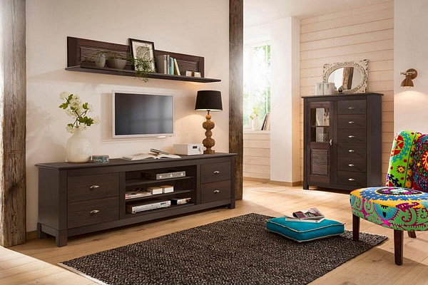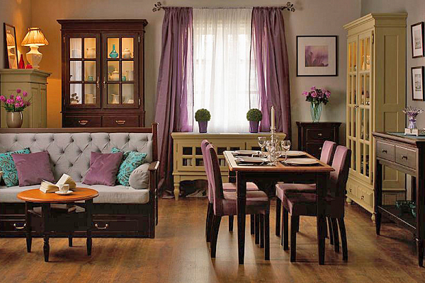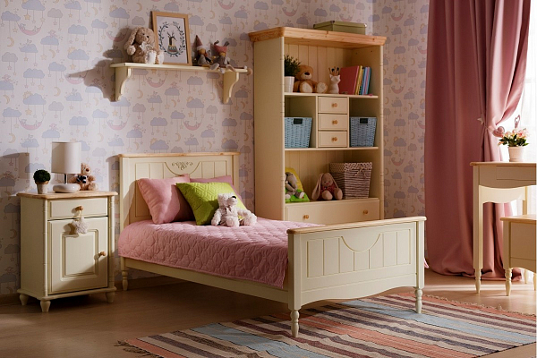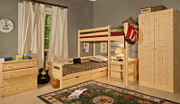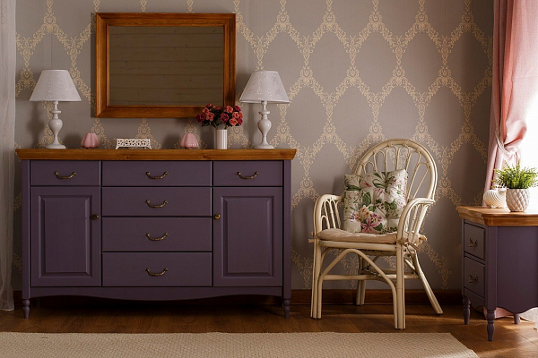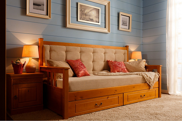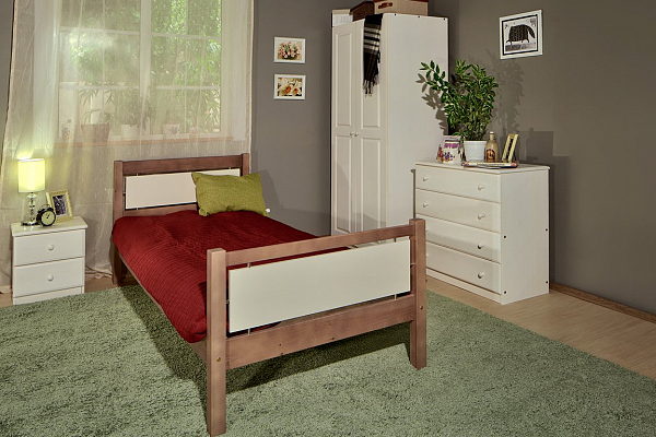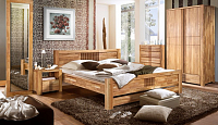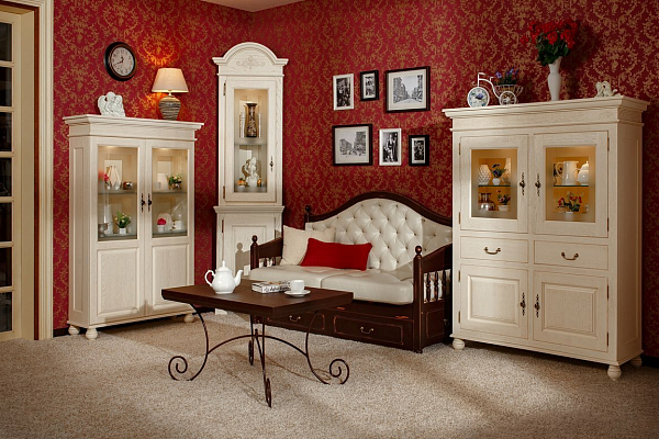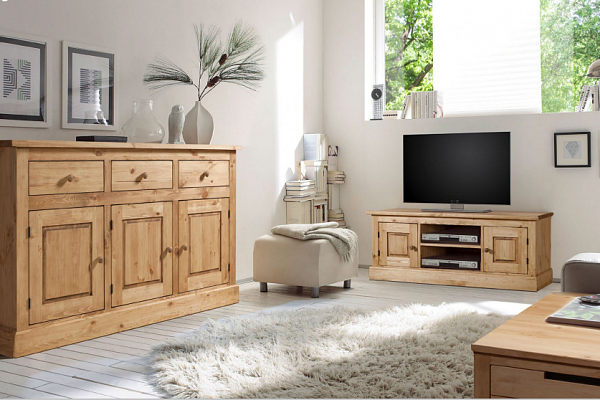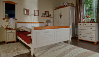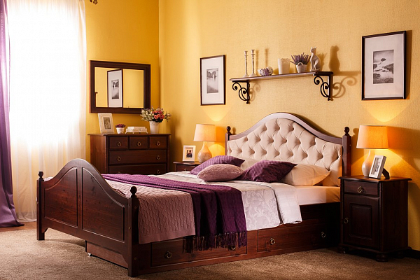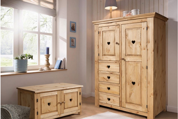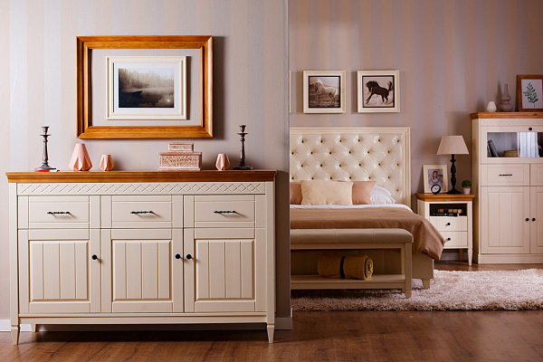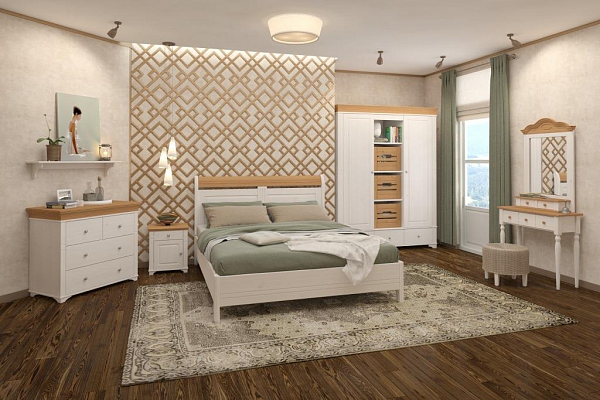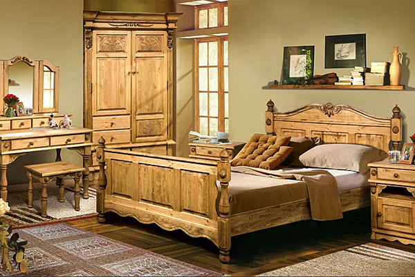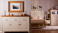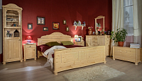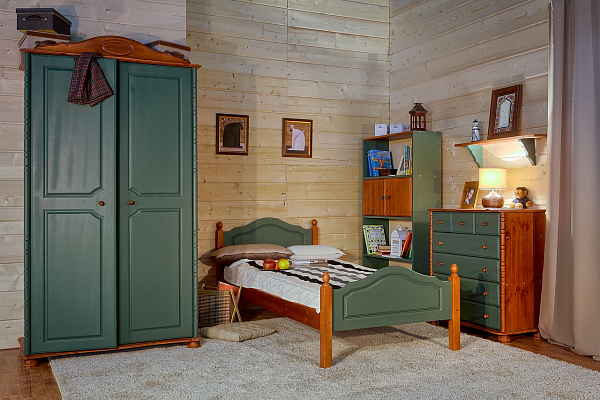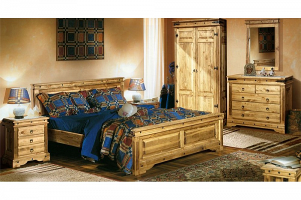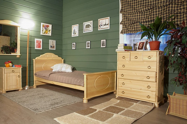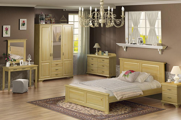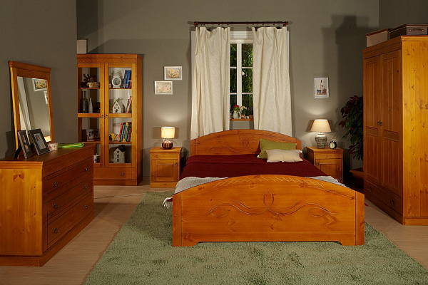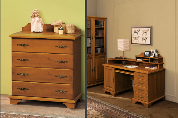 Эта коллекция мебели оформлена под старину. Массивные детали, простые практичные формы, надежная фурнитура. Большая часть предметов сделана из массива дерева, преимущественно белорусской сосны. Отделка сведена к минимуму или используется натуральный шпон, чтобы мебель слегка наполняла комнаты запахом свежего дерева. Легкий аромат придает естественности интерьеру, вызывает положительные эмоции, настраивает на позитив во время сна и пробуждения.