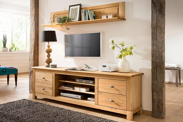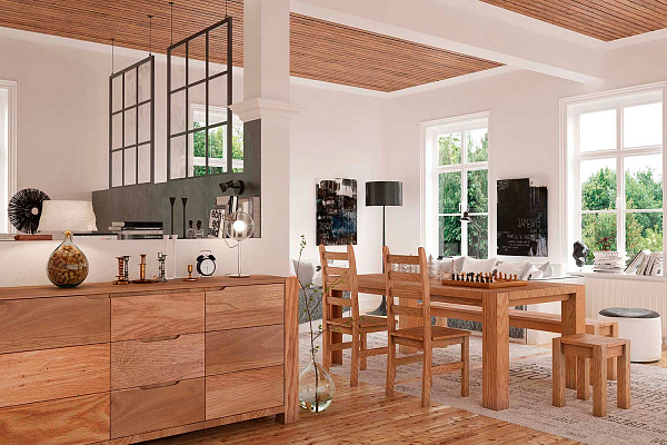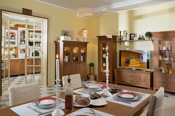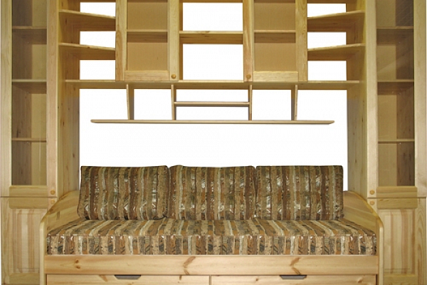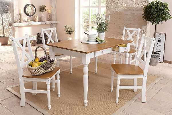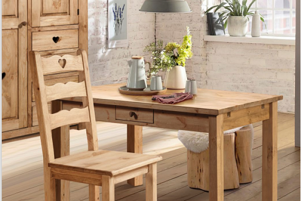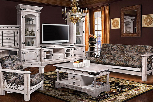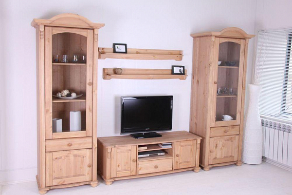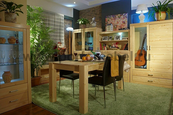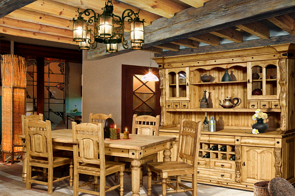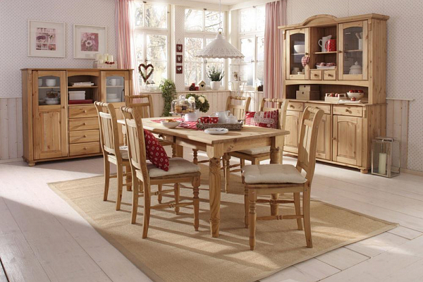 Вся мебель из сосны имеет красивый янтарный цвет. Он хорошо сочетается со светлыми оттенками, поэтому многие предпочитают заказывать для кухонь именно сосновые гарнитуры – бытовая техника на их фоне выглядит очень уместно и современно. Мебель из сосны для гостиных и спален иногда покрывают морилкой, которая придает дереву более темный оттенок. Покрытие делает поверхность сосны фактурным, подчеркивая уникальные особенности каждой доски. Даже выполненная по стандартным чертежам, мебель из дерева неповторима – рисунок, образованный прожилками и срезами от сучков, для каждого изделия индивидуален.