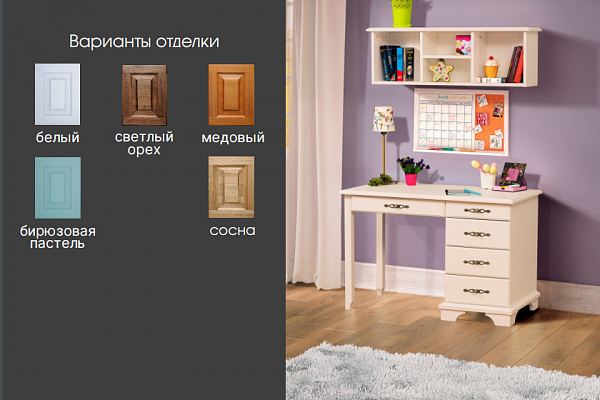 Надежная фурнитура и высокое качество отделки - характеристики, которые ставят продукцию фабрики Муромские мастера в один ряд с передовыми производителями мебели России. Помимо базовых цветов, пастельных оттенков, есть возможность выбрать свой цвет из широкой палитры, предлагаемой фабрикой.