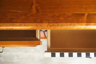 Достоинства: Легко собирать, ящики ездят мягко и тихо, цвет столешницы красивее и темнее, чем предполагал. Широкое расстояние между стенками. Симпатичный стол