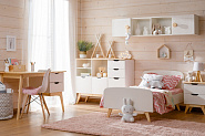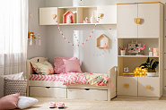 Хорошая кроватка для девочки, прекрасное оформление. Понравился дополнительный бортик — помогает не скатываться с кровати. Вежливый контактный продавец. Профессиональные сборщики. Забыла запросить расстояние от пола до ниши кровати, поэтому оказалась низкая кроватка, под нее нельзя поставить ящик. Зато ребенку очень удобно на неё забираться. В целом, роли не играет, кроватью довольна.