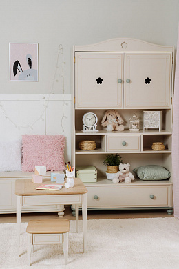 Отзыв: Покрытие белой краской на водной основе в один слой может кому-то не понравиться, так как просвечиваются извилины сосны. Однако за это и любят деревянную мебель!