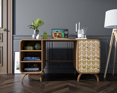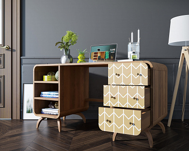 Достоинства: Легко собирать, ящики ездят мягко и тихо, цвет столешницы красивее и темнее, чем предполагал. Широкое расстояние между стенками. Симпатичный стол
