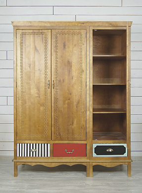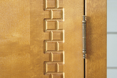 Отзыв: Со временем цвет шкаф меняется: покрытие лазурью полупрозрачное, сосна темнеет, всё больше проявляется текстура дерева через покрытие. Нам это нравится, а Вы сами думайте. Уважаемый VS-Plus, предлагайте петли с доводчиком приобрести у вас отдельно!