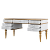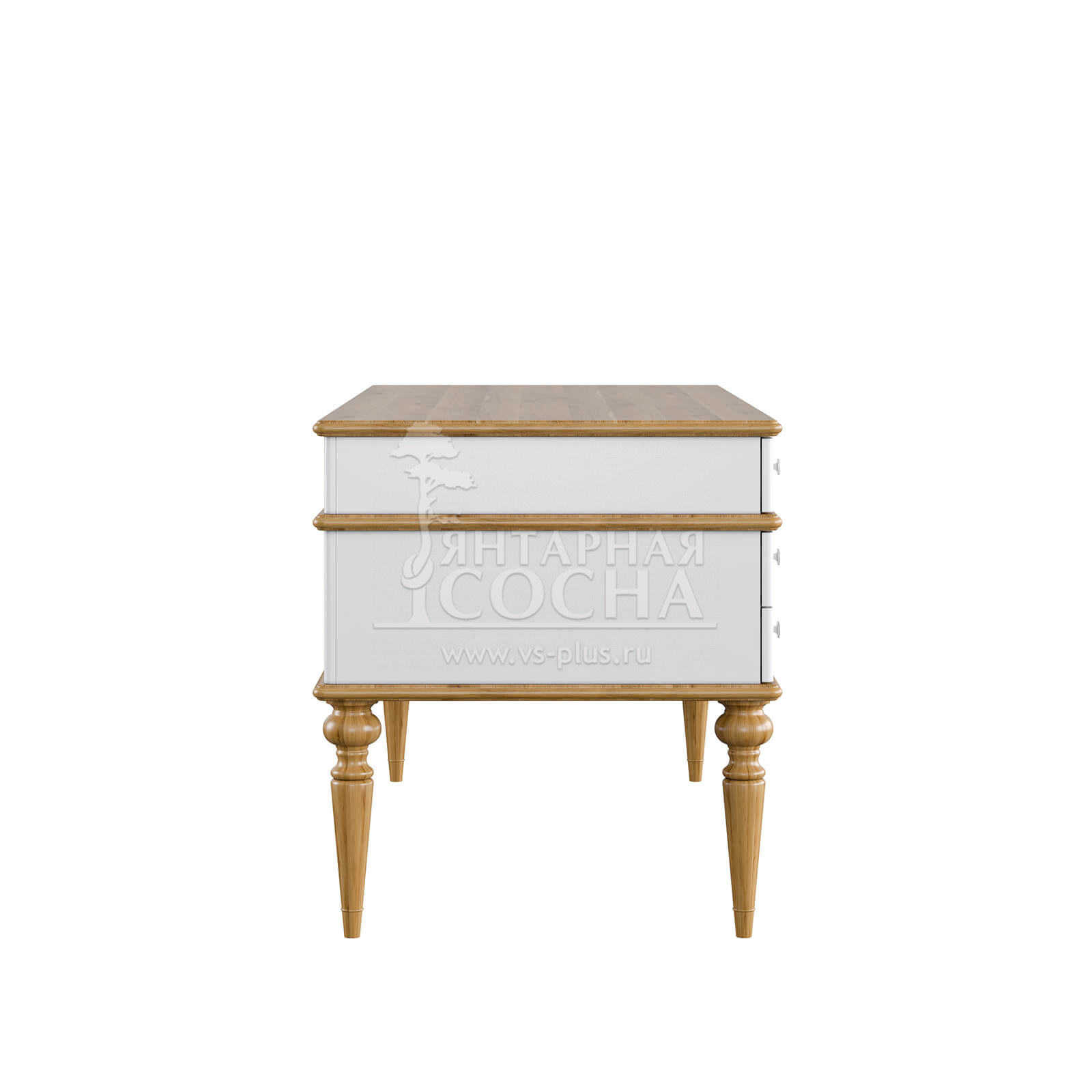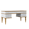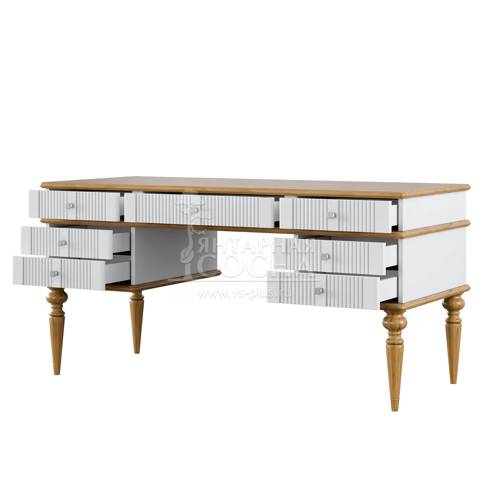 Классический письменный стол из коллекции “Рандеву” для поклонников светлых интерьеров. Широкая удобная столешница подойдет для работы за компьютером. Под ней расположено семь выдвижных ящиков для канцтоваров, документов и разных мелочей. Все детали сделаны из натурального массива дерева и МДФ, что обеспечивает их прочность и надежность. Отличное приобретение для личного кабинета, гостиной или спальни. Широкая столешница удобна как для работы за компьютером, так и для рисования и другого ручного труда.