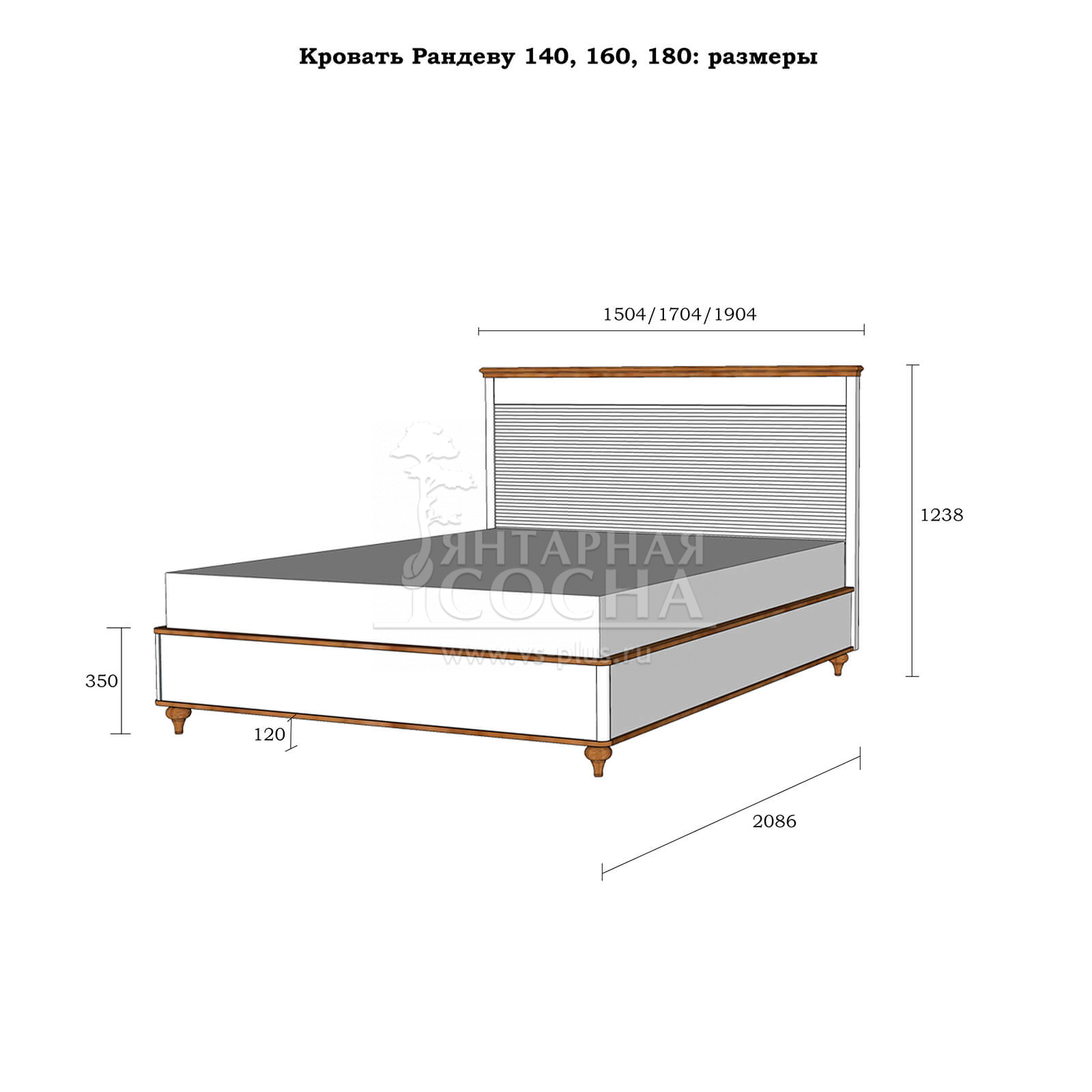 Габаритные размеры кровати: (ШхВхГ, мм.) 1504x1238x2086 мм;