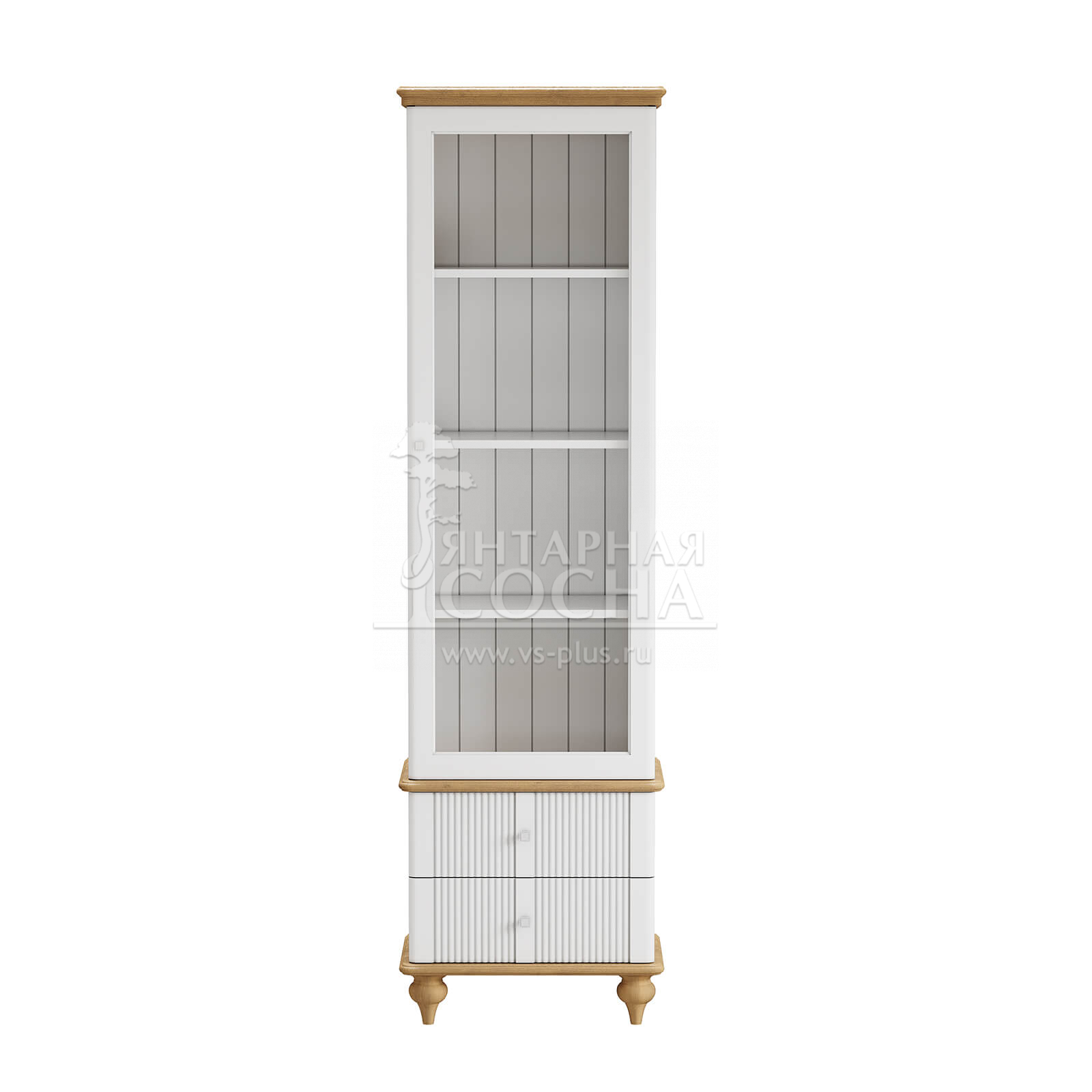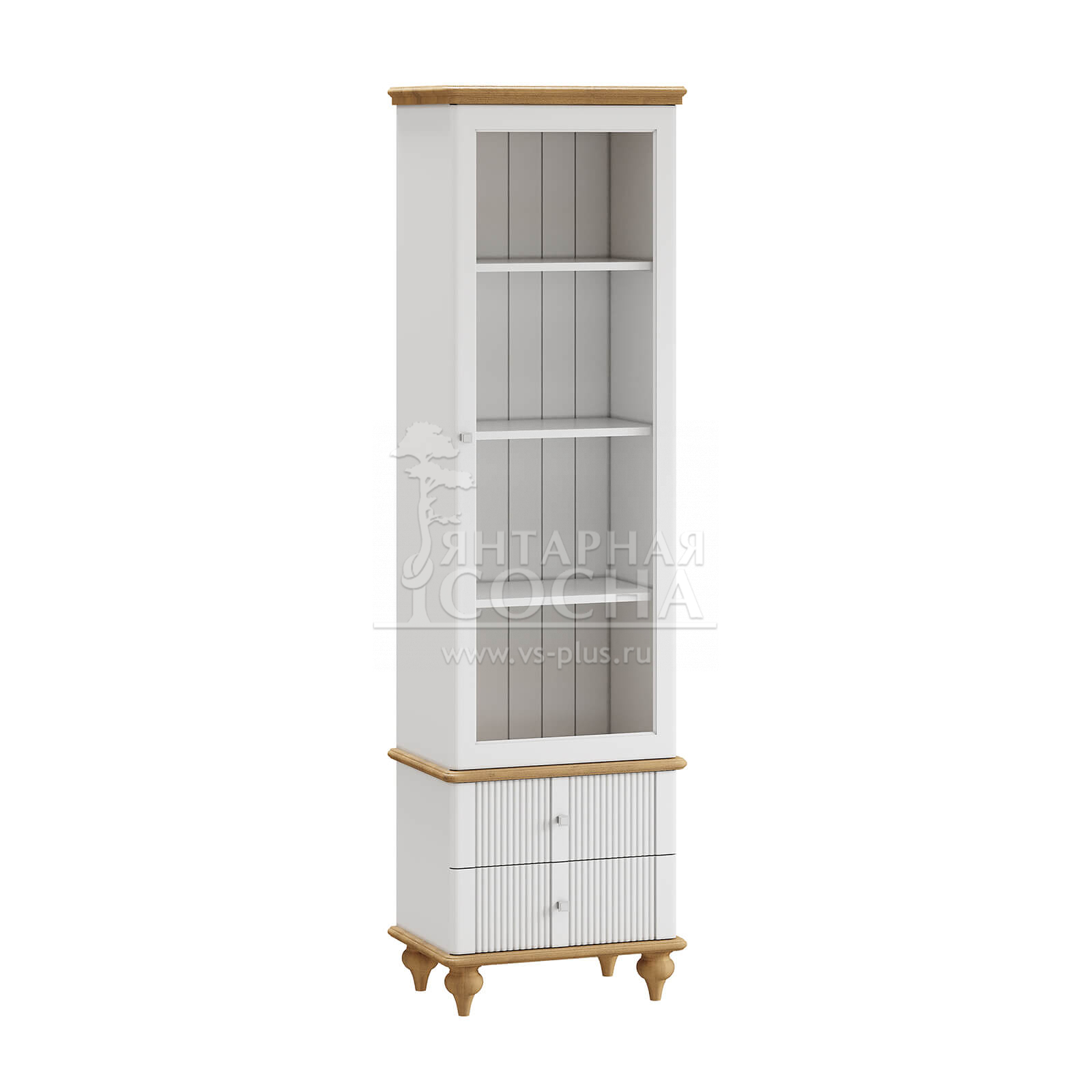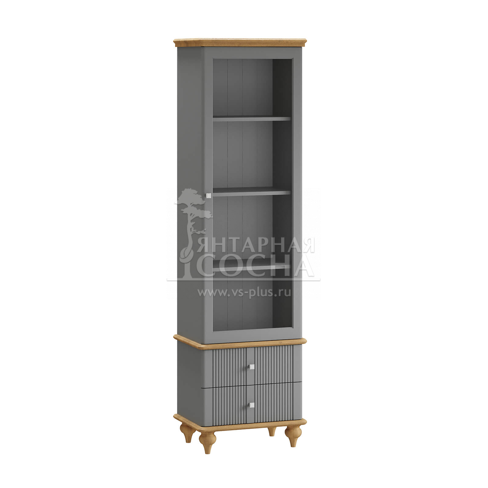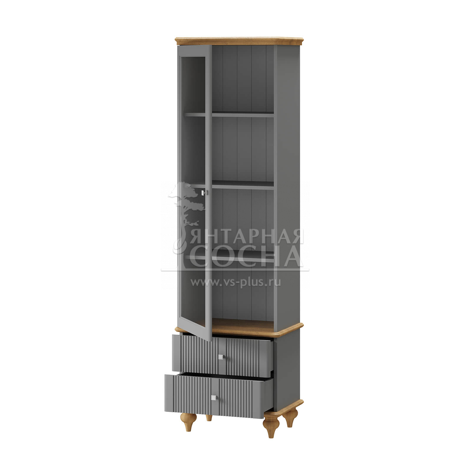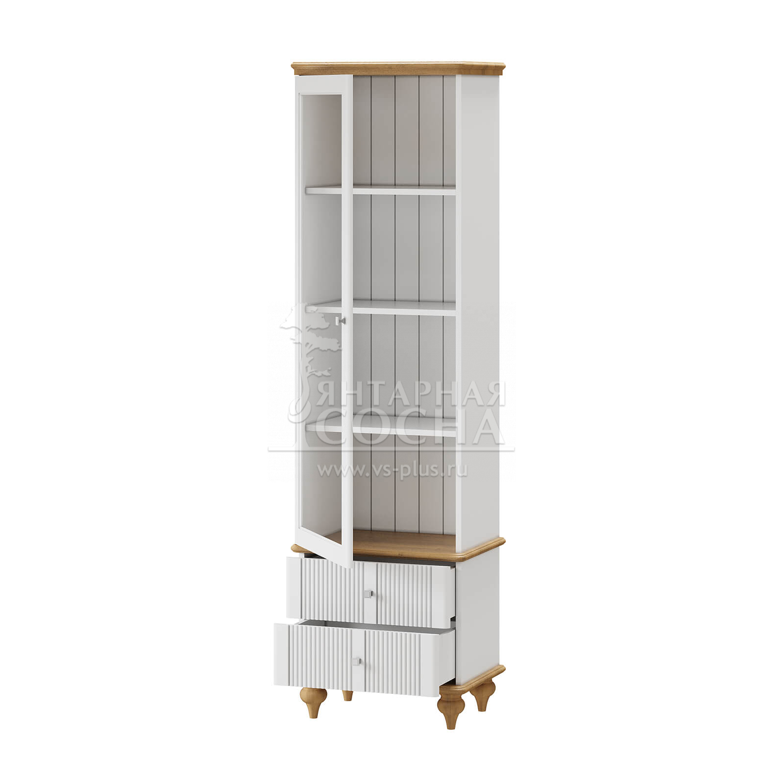 Представляем шкаф для посуды «Рандеву» 12 из массива сосны и стекла. Представляет собой высокий шкаф с распашной, стеклянной дверью. Снизу два выдвижных ящика. Особенности