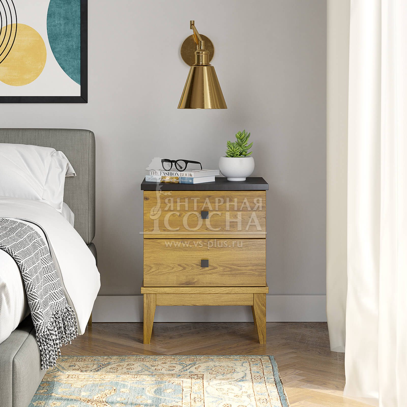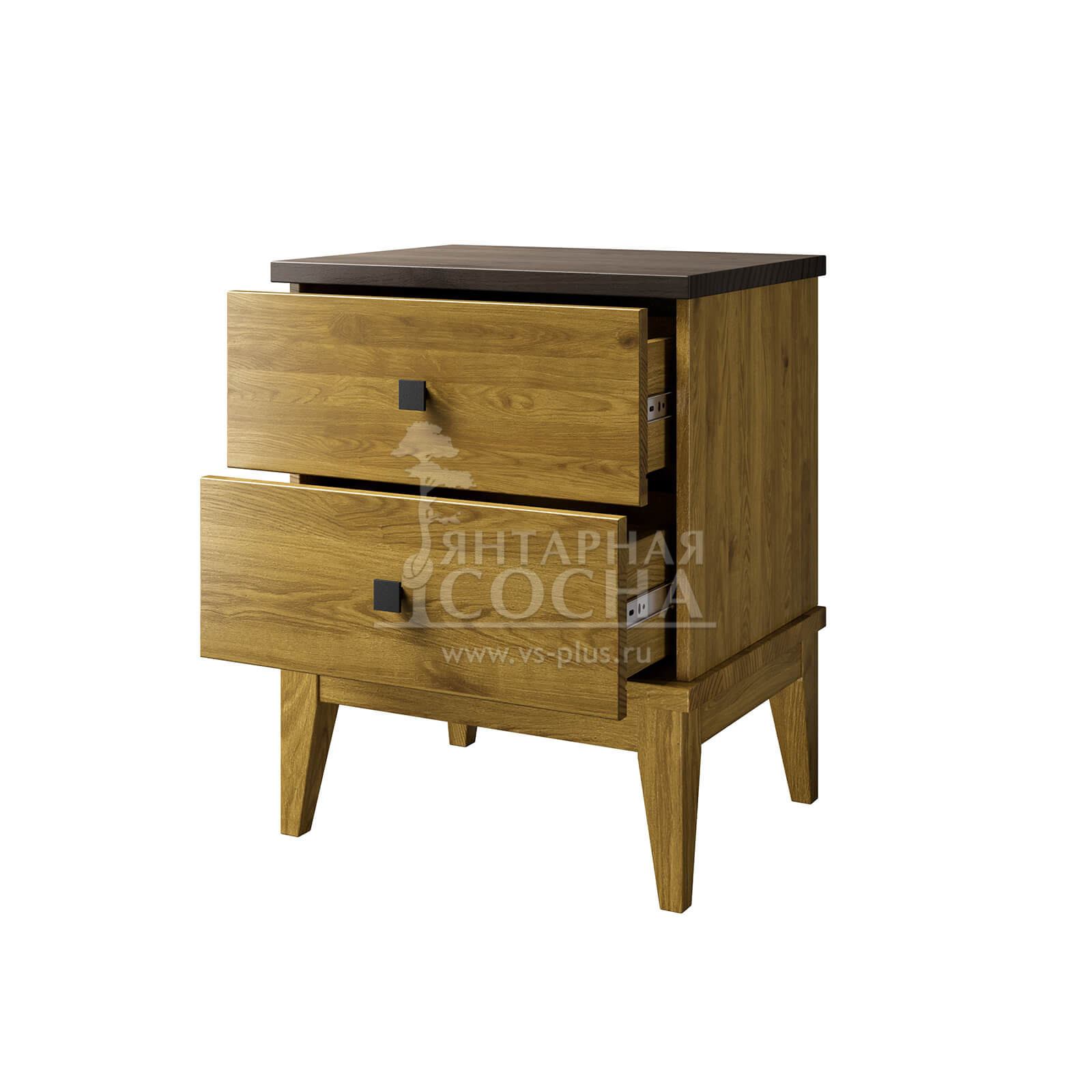 Изготовлена из прочного массива сосны, тумбочка обладает надежностью и долговечностью, а видимая структура дерева придает ей уникальный и органичный облик. Высокие ножки придают изделию легкость и современный вид, позволяя создать ощущение простора в вашем интерьере. Два выдвижных ящика на телескопических направляющих полного выдвижения обеспечивают удобный доступ к необходимым вещам и организуют пространство на прикроватной тумбочке.