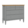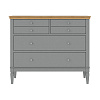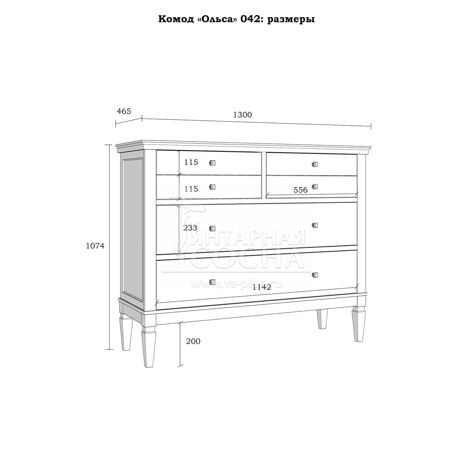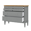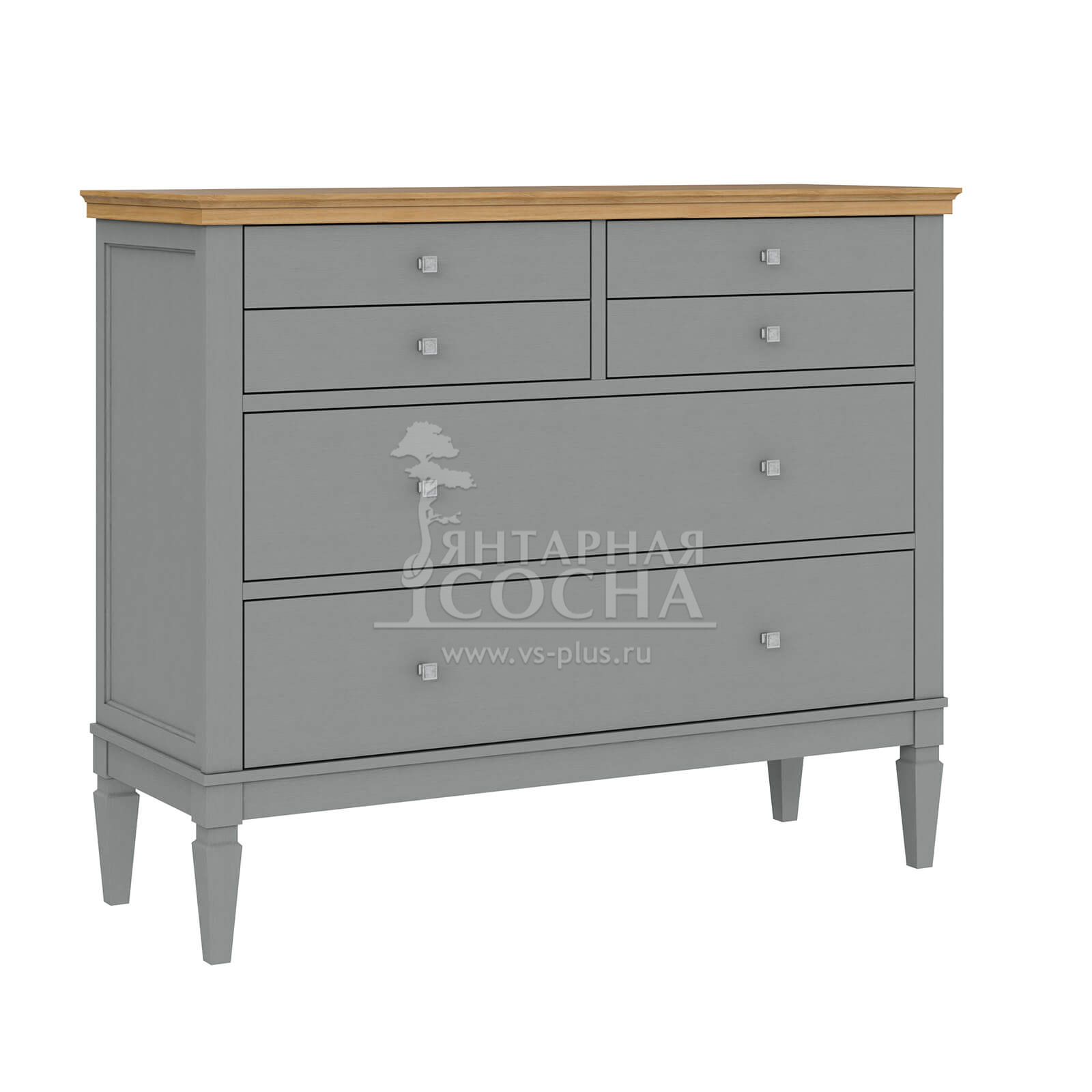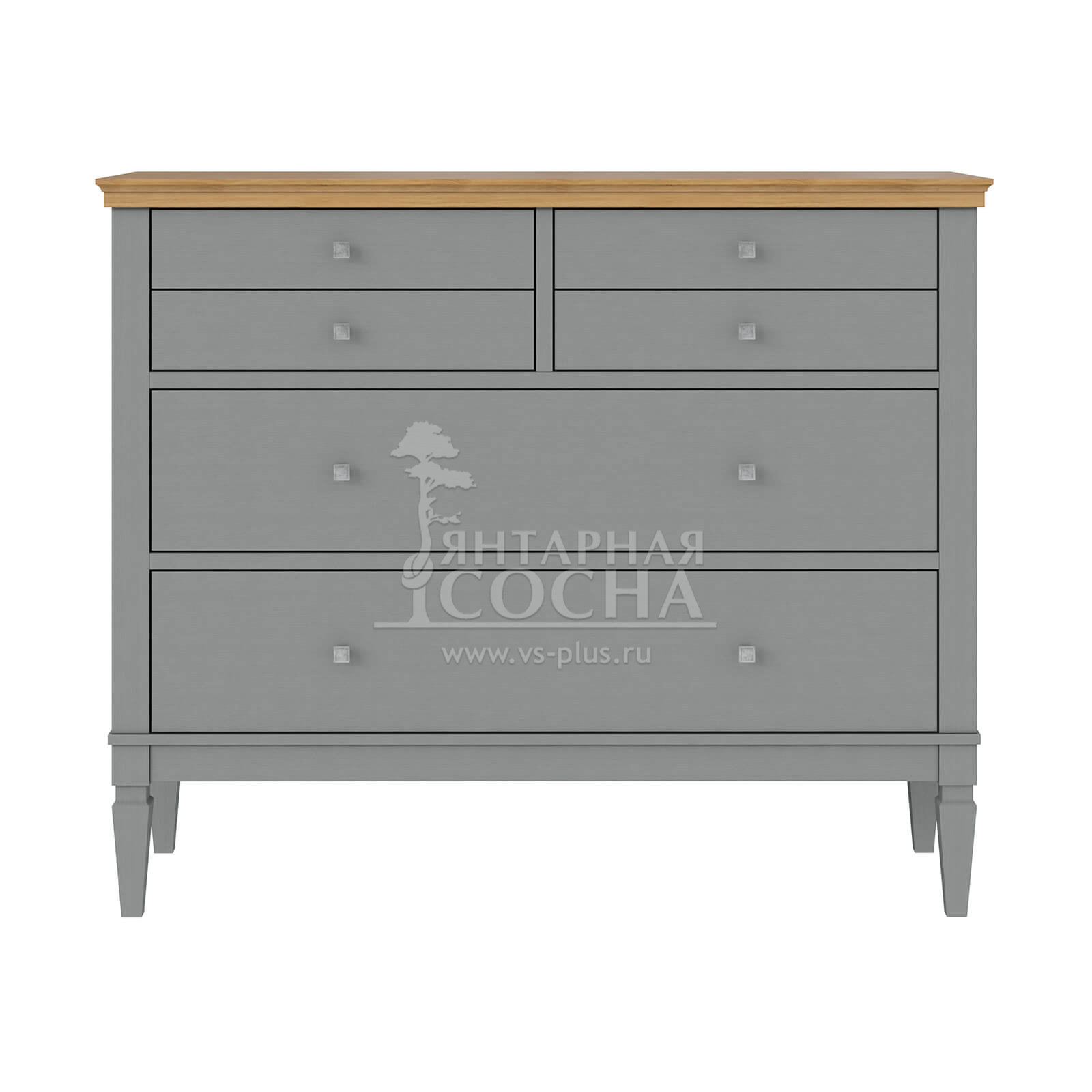 Комод оснащен двумя большими и четырьмя маленькими ящиками. Фурнитура на ящиках с доводчиками. Высокие ножки обеспечивают оптимальный доступ при уборке.