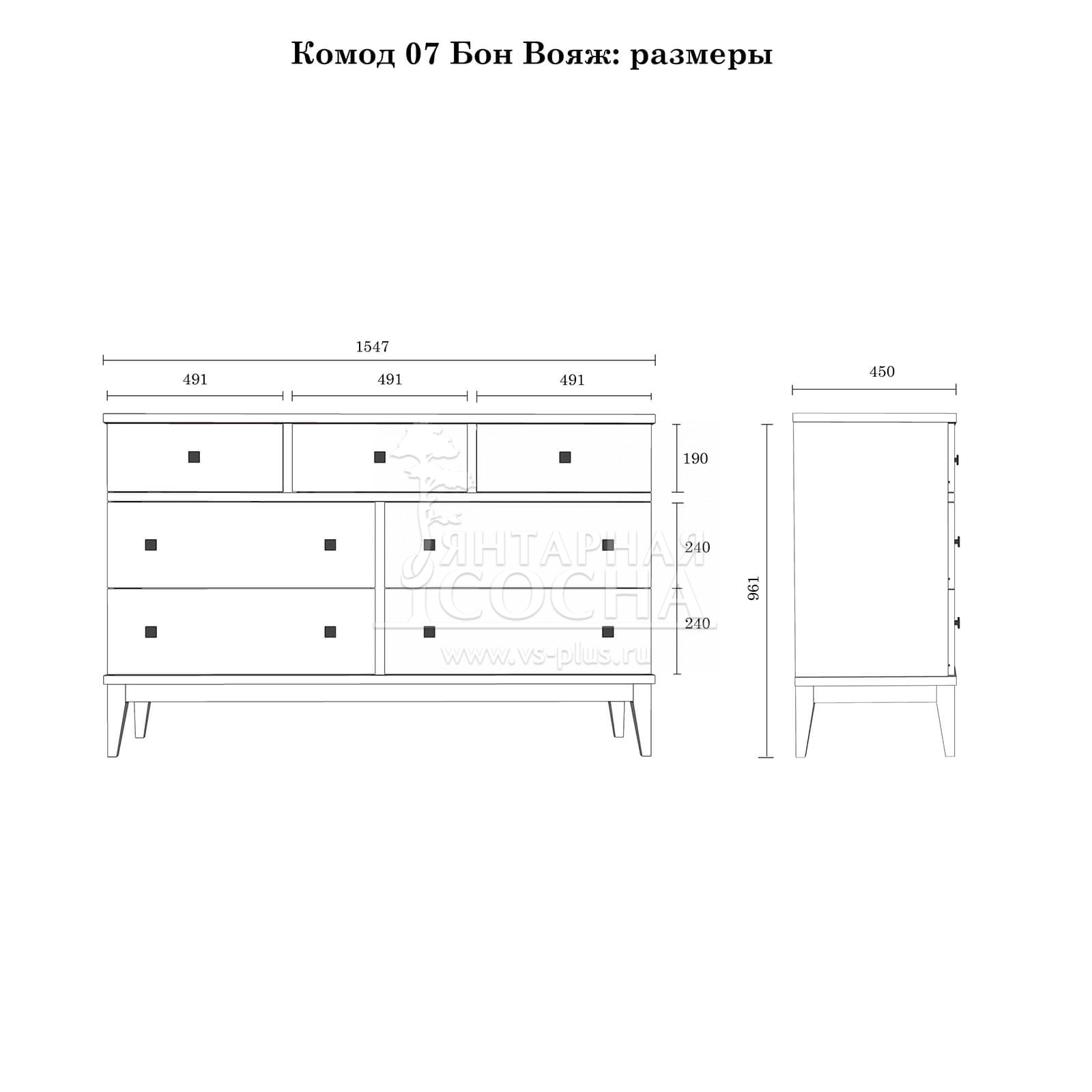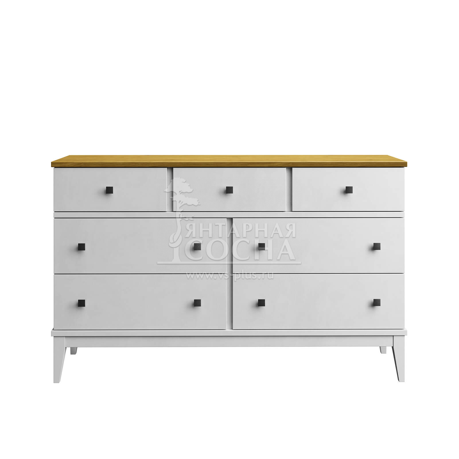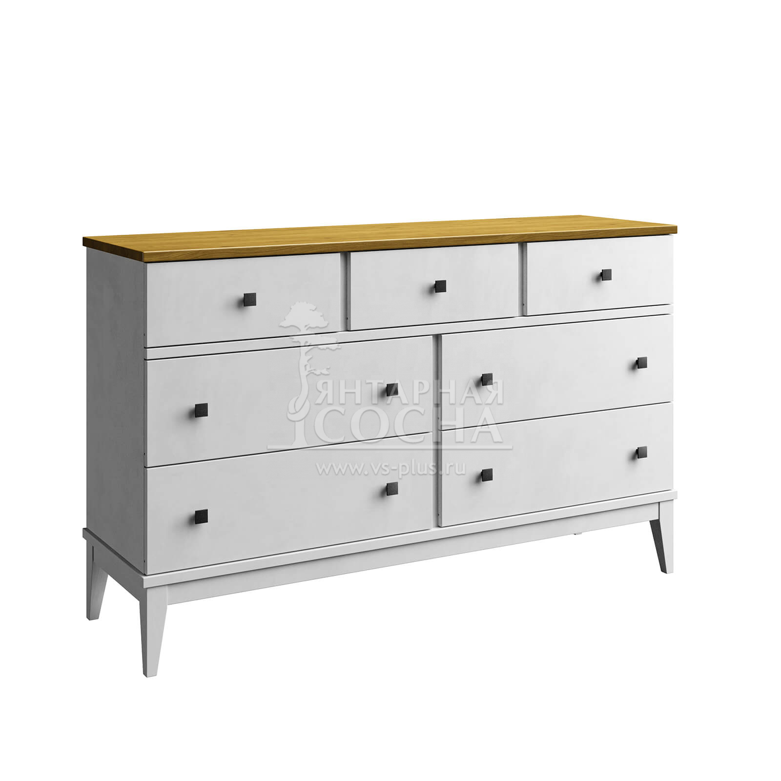 Комод оснащен четырьмя широкими и и тремя узкими ящиками. Высокие ножки обеспечивают оптимальный доступ при уборке.