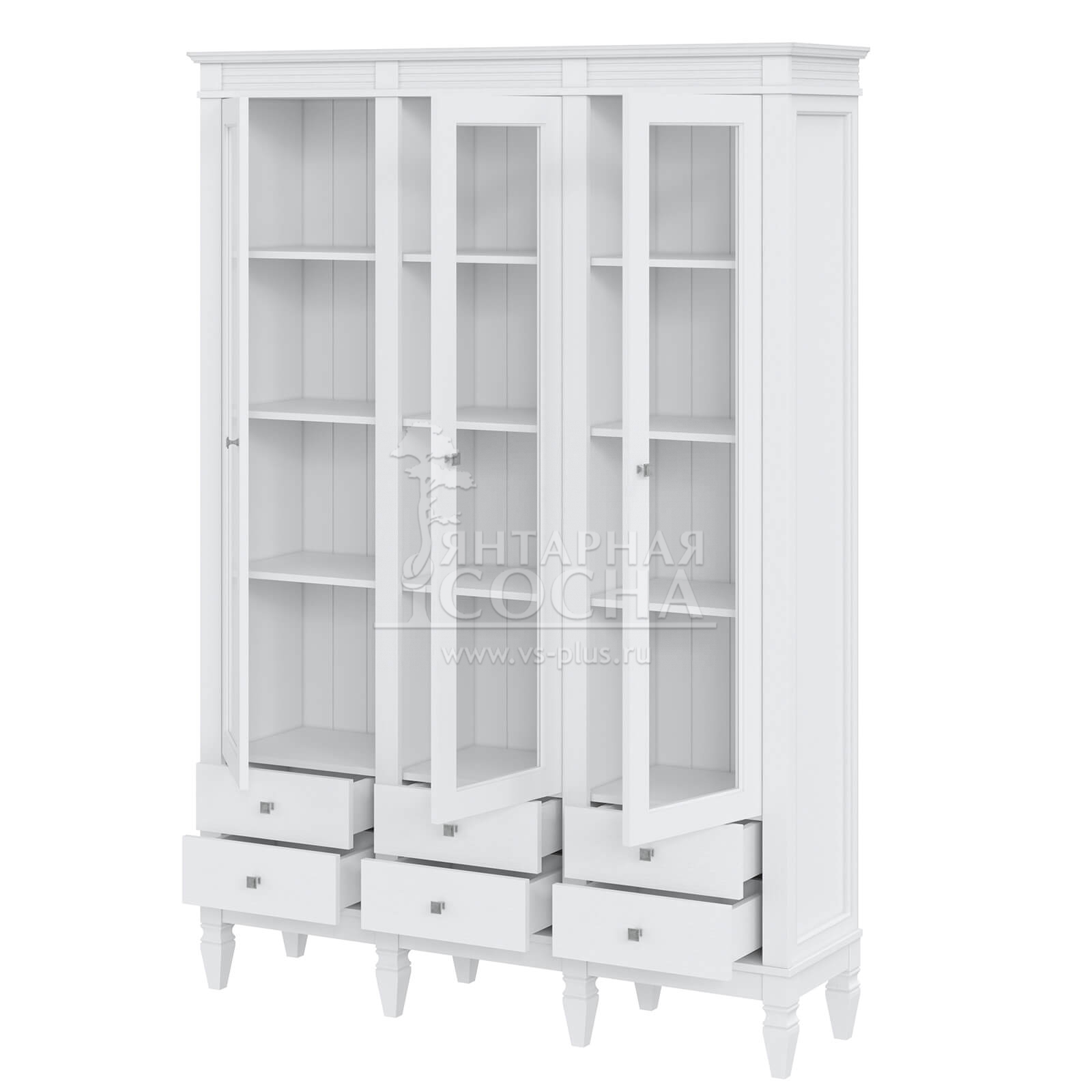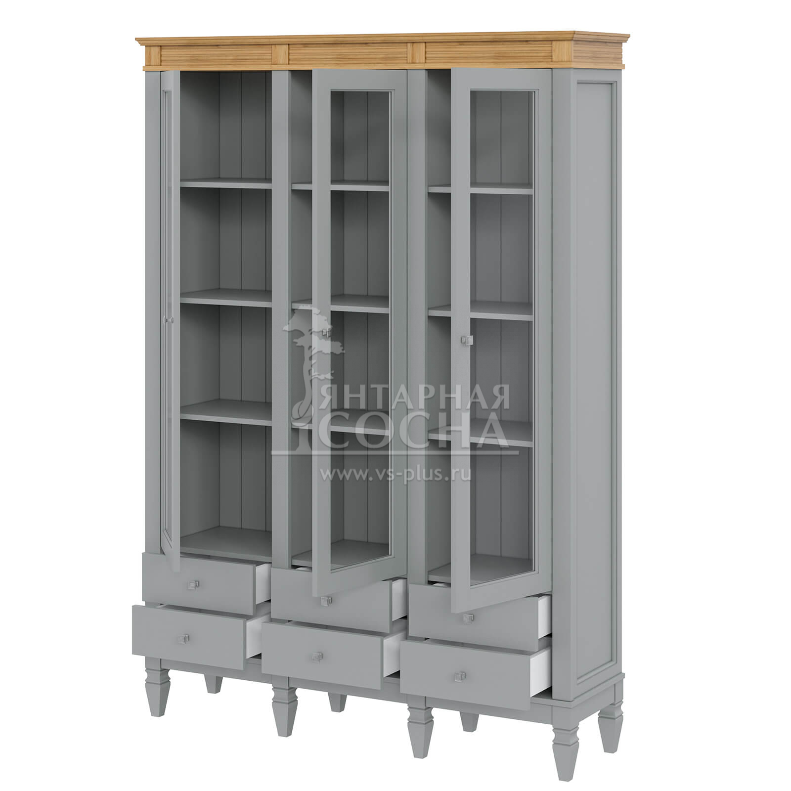 Предлагаем стеллаж «Ольса» 303/006 из соснового массива – для тех, кто располагает большой библиотекой, коллекцией сервизов или сувениров. Выполнен в форме витрины с распашными дверями со стеклянными вставками. Дверные петли изготовлены австрийской фирмой Blum. Ручки - итальянцами Giusti. В нижней части находятся выдвижные ящики, которыми комфортно пользоваться за счет доводчиков. Изделие подходит для многих современных стилей интерьеров, например, скандинавского или лофта.