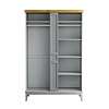 Шкаф оснащен распашными дверями, которые удобно открываются, предоставляя легкий доступ к содержимому. Внутреннее пространство шкафа продумано до мелочей: здесь достаточно места для хранения одежды, постельного белья или других вещей. На высоких ножках шкаф визуально "поднимает" пространство, что создает ощущение легкости и позволяет легко очищать полы под ним.