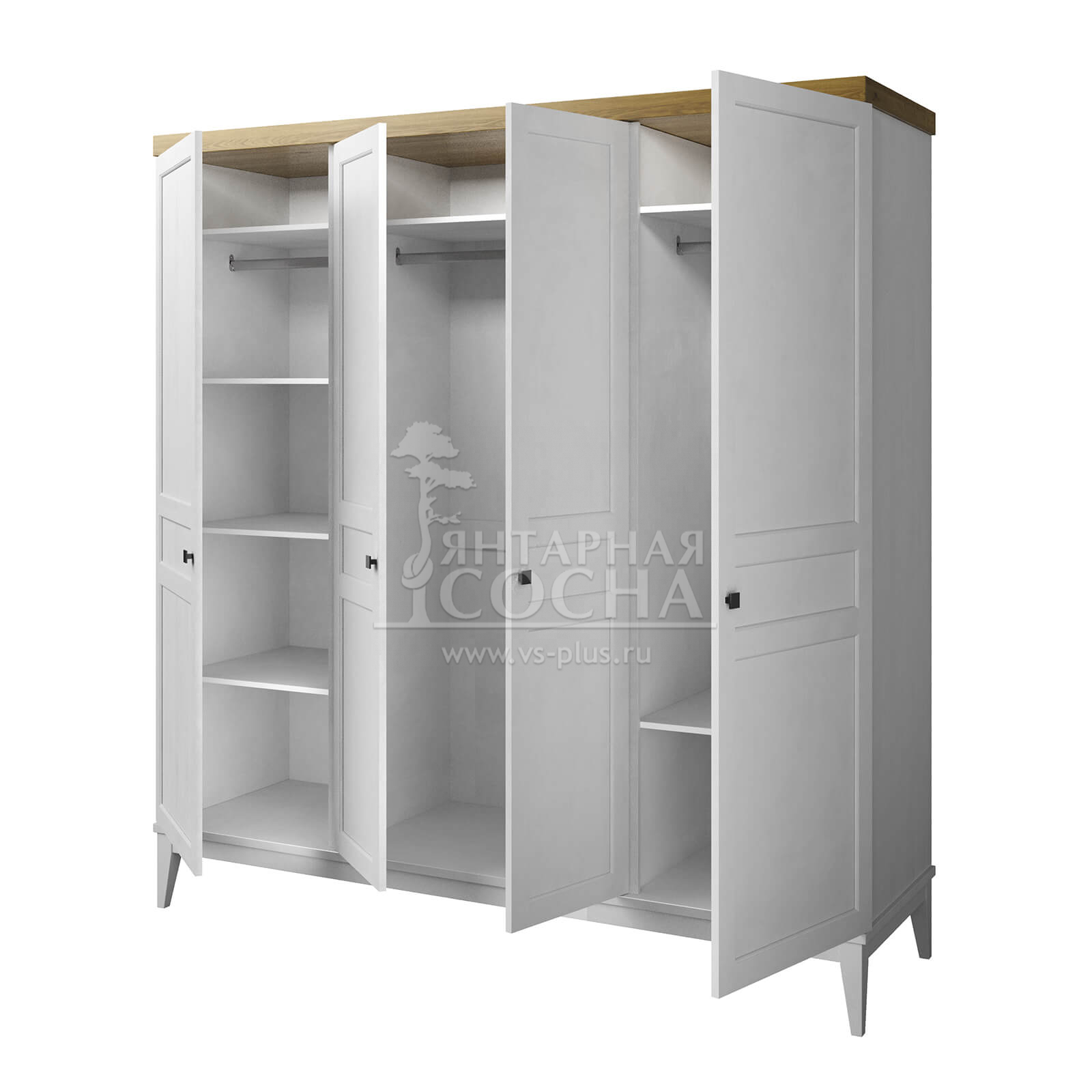 Этот великолепный четырехстворчатый шкаф станет стильным и функциональным дополнением вашего интерьера. Изготовленный из высококачественного массива сосны, он отличается прочностью и долговечностью, а его натуральная текстура и мягкий цвет делают его идеальным выбором для создания уютной атмосферы в любом помещении. Шкаф оснащен распашными дверями, которые удобно открываются, предоставляя легкий доступ к содержимому. Внутреннее пространство шкафа продумано до мелочей: здесь достаточно места для хранения одежды, постельного белья или других вещей. На высоких ножках шкаф визуально "поднимает" пространство, что создает ощущение легкости и позволяет легко очищать полы под ним. Эстетика шкафа подчеркивается натуральными линиями дерева и аккуратной отделкой, что делает его отличным выбором как для классического, так и для современного интерьера. Этот шкаф станет не только практичным хранилищем, но и настоящим акцентом в вашем доме, придавая ему индивидуальность и шарм. Особенности