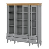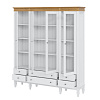 Большой и вместительный стеллаж «Ольса» - находка для просторной гостиной, библиотеки или кабинета. Здесь вы сможете разместить не только любимые книги, но и посуду и другие нужные вещи: при желании его можно дополнить комплектом навесных дверей. Визуально разделен на три вертикальных секции, в каждой из которых четыре полки за стеклянными дверями и 6 ящиков. Сделан из натурального массива, поэтому может выдерживать значительные нагрузки.