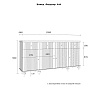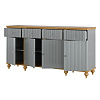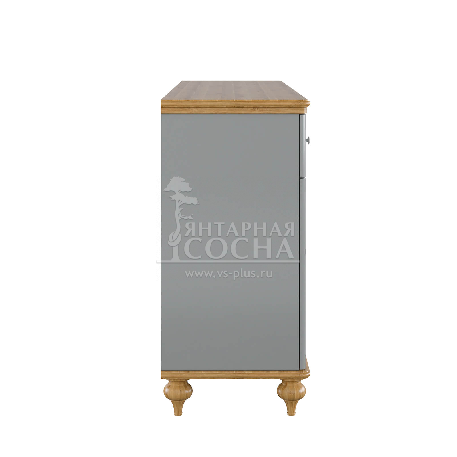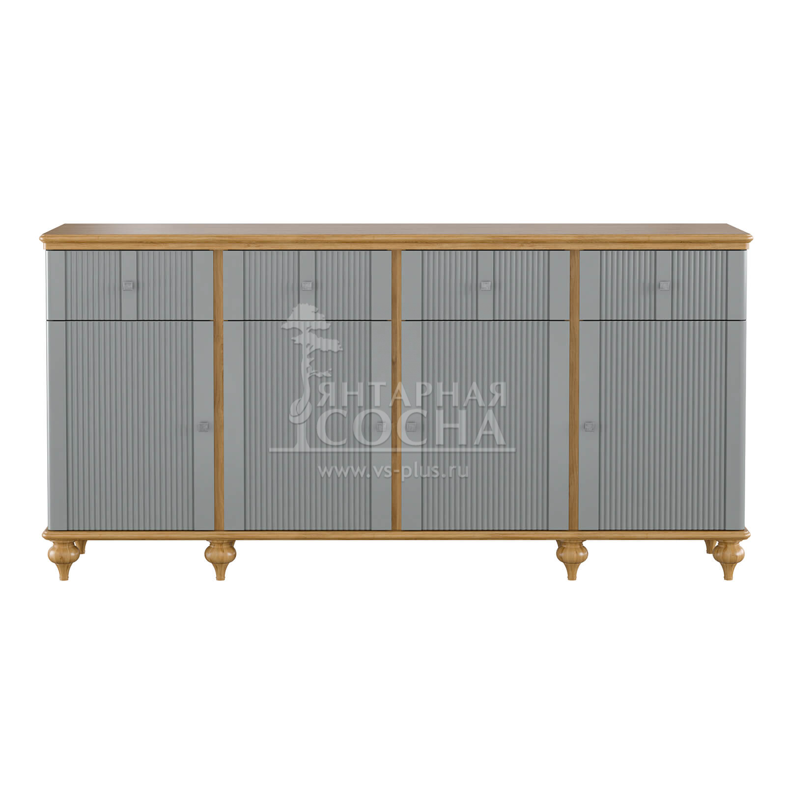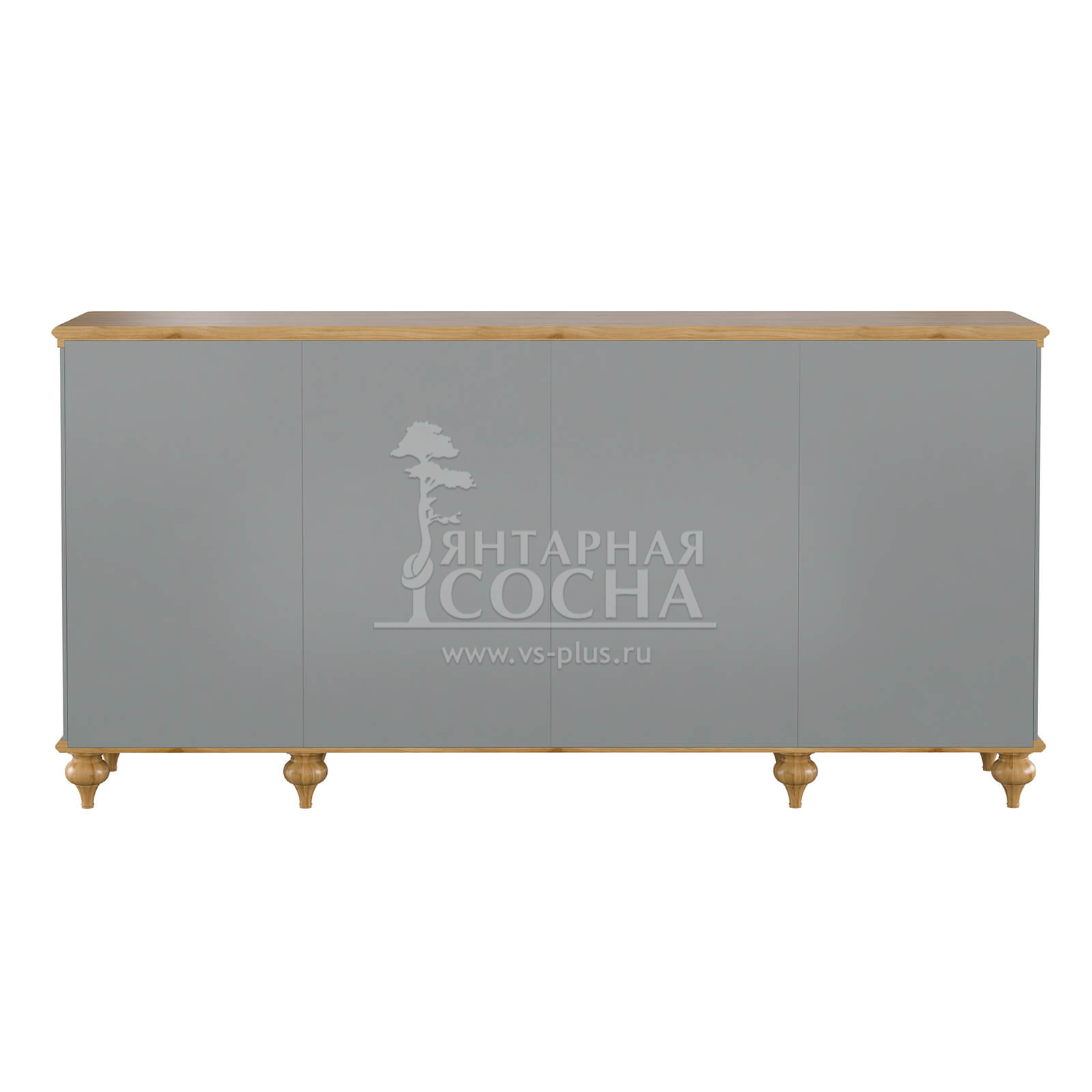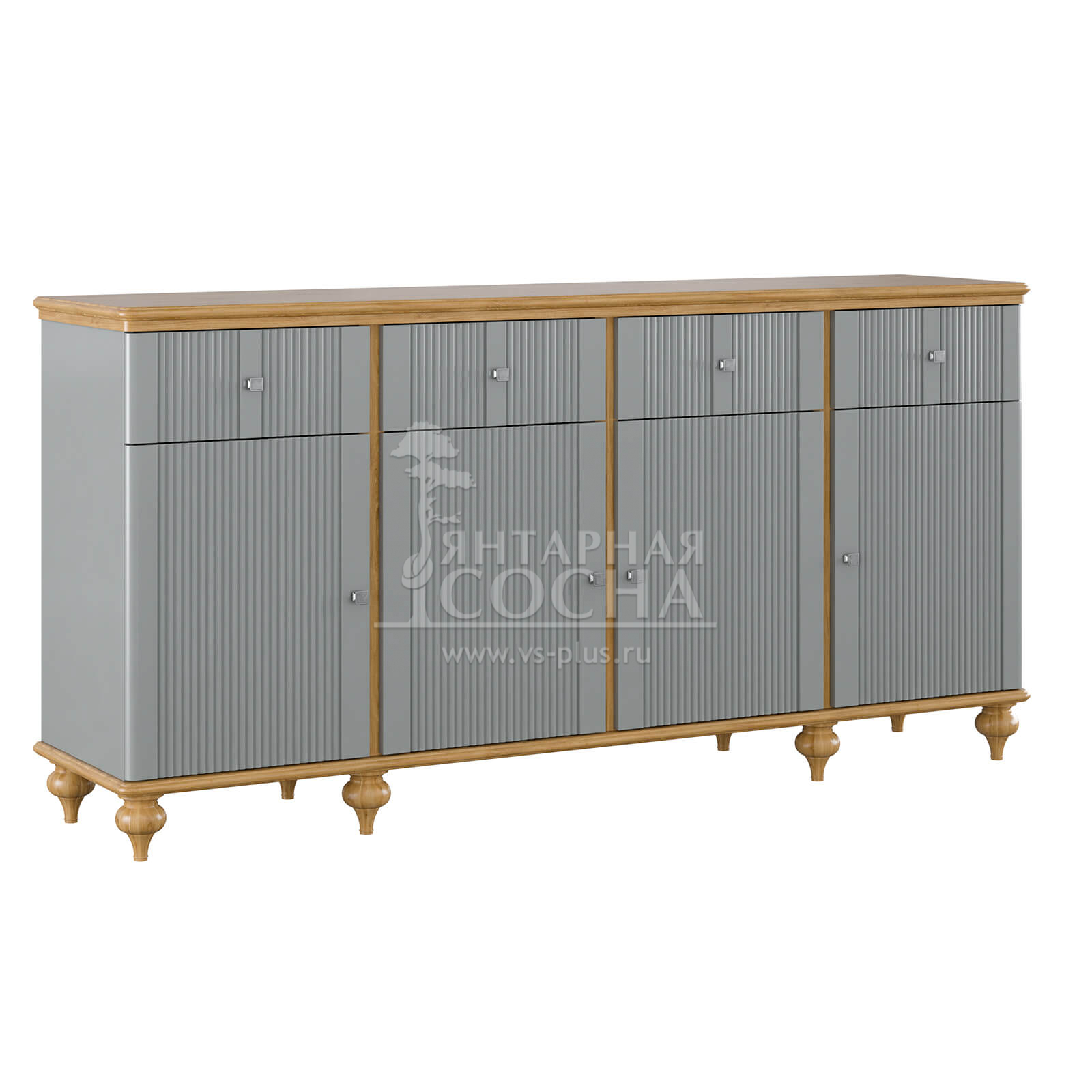 Комод оснащен четырьмя распашными дверками с полками внутри и четырьмя ящиками. Фурнитура на дверях и ящиках с доводчиками. Высокие ножки обеспечивают оптимальный доступ при уборке.