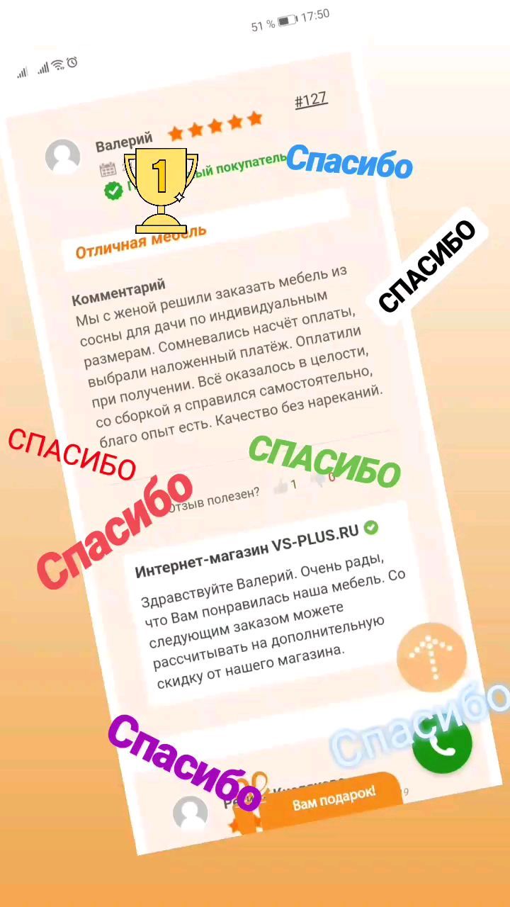 Отзыв: Знакома с Янтарной сосной более 10 лет. Первую мебель заказывала на старую дачу году в.... 2011. Уже и дачи нет, а мебель, как новая стоит, радует в большом, деревянном доме. Это не последний заказ.