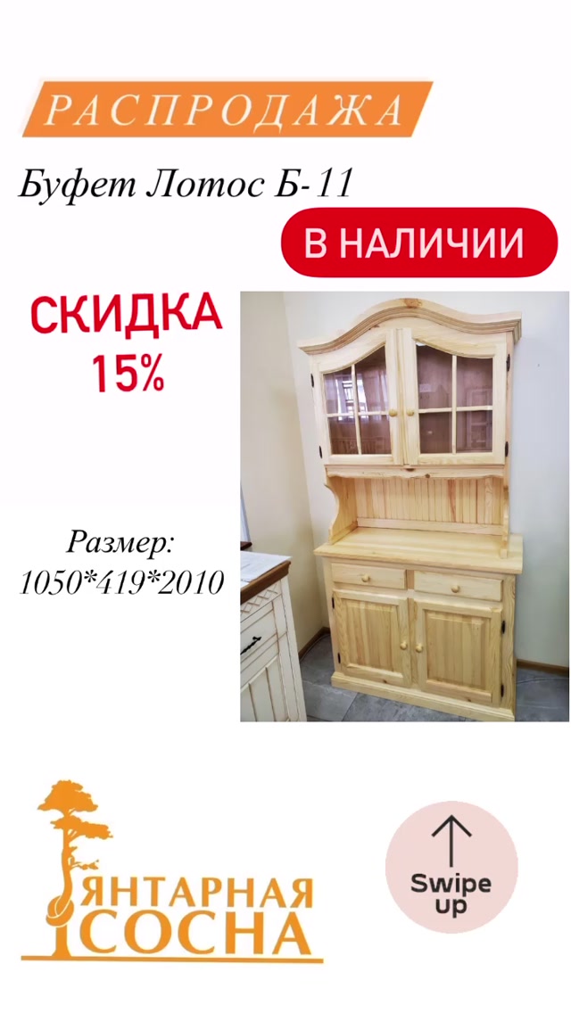 Достоинства: Очень понравился шкаф. Пунктуальная, быстрая доставка, вежливые люди, сборка в этот же день , выполнена за час. Качество очень хорошее . Ящики открываются отлично ,одни достоинства, ровненький, гладенький пахнет сосной, очень радует ,просто красивый! ?Спасибо Вам большое за такой хороший, качественный товар. Просто волшебный буфет. ?