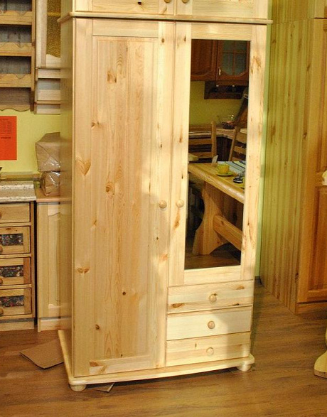 Достоинства: шкаф из массива сосны с зеркалом. Двери ходят отлично. За месяц эксплуатации нет никаких проблем. Хорошая вещь