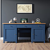 Стиль кантри в интерьере - это прежде всего натуральность материалов, уютная простота и удобство. Фундаментальный и практичный рабочий стол "Jules Verne" сочетает в себе все эти характеристики. Стильный синий цвет, идеальная геометрия форм, кованые ручки и фактурная ясеневая столешница придадут интерьеру еще немного шарма.