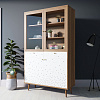 Буфет "Berber" имеет два выдвижных ящика на шариковых направляющих (могут быть заменены на доводчики по желанию). Низ буфета разделен на две секции, которые скрываются за двумя дверками, и полкой. Верхняя часть закрывается стеклянными дверцами, а на двух полках отлично расположится декор или кухонная утварь.