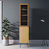 Узкий буфет "Berber" (принт 43) в скандинавском стиле прочен и надежен — ножки и рама двери выполнены из массива ясеня, обработанного морилкой, корпус — из ЛДСП австрийской фирмы "EGGER".