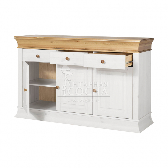 Буфет «Бостон» – настоящая винтажная находка. Элегантная простота и функциональность, натуральные материалы, доступная цена – вот составляющие качественной мебели. На полках уютно будут смотреться антикварная посуда, старинные шкатулки, статуэтки, а кухонную утварь можно разместить в удобных ящиках. Буфет изготовлен из массива сосны, одного из самых экологичных природных материалов. Кроме того, буфет «Бостон» органично впишется практически в любой интерьер – он будет уместен как на маленькой кухне в стиле «Прованс», так и в большой столовой загородного дома.