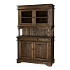 Двустворчатый буфет для столовой или кухни в стиле кантри. Идеальное решение для простого интерьера загородного дома. Благодаря средним габаритам, подойдет для обустройства небольшого помещения. Конструкция модели условно разделена столешницей на две части: витрину с 2 полками и застекленными дверцами и большую тумбу для хранения посуды и кухонных принадлежностей. Буфет выполнен из массива сосны в цвете орех. Контрастная кованая фурнитура дополняет дизайн предмета мебели и обеспечивает удобное использование в обиходе. Резной декор и карнизы придают оформлению изящество и провинциальное очарование. Буфет поставляется в разобранном виде.