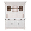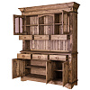 Буфет-витрина в стиле кантри для гостиной или столовой. Конструкция условно разделена на 2 части: витрину с открытыми, застекленными полками, 3 выдвижными ящиками и тумбу с 3 ящиками для столовых принадлежностей и полками для хранения посуды. На ящиках установлены направляющие шариковые. Контрастная кованая фурнитура на фасадах отличается надежностью и удобство использования.