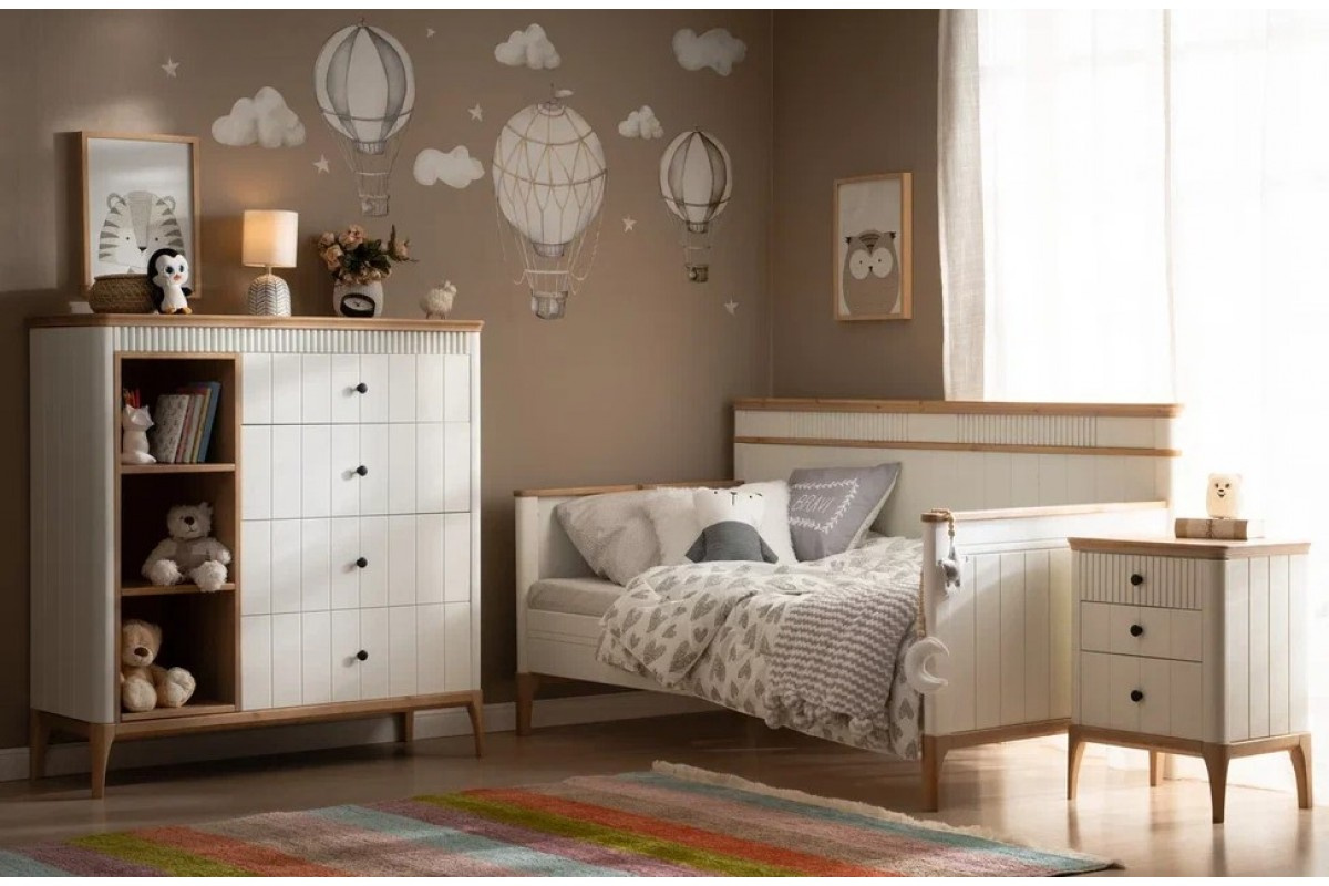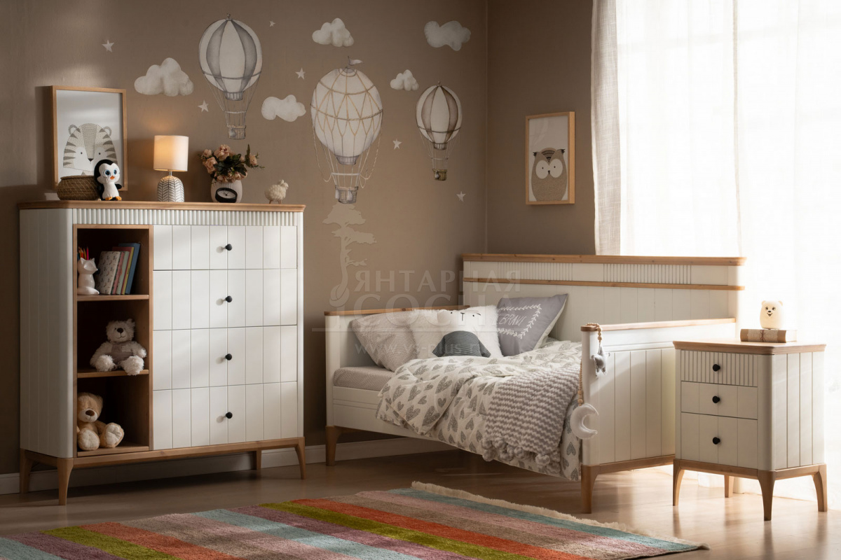 Все элементы набора выдержаны в едином стиле и формируют гармоничное пространство, в котором ребёнку комфортно и приятно находиться. «Грета» подойдёт как для детской в квартире, так и для загородного дома.