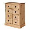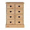 Комод KR53 — компактный, декоративный и невероятно функциональный вариант для тех, кто любит порядок в мелочах. Модель выполнена из натурального массива сосны и украшена восьмью маленькими выдвижными ящиками, каждый из которых имеет прорезное сердечко — аккуратный, уютный элемент в стиле кантри, прованс или шале.