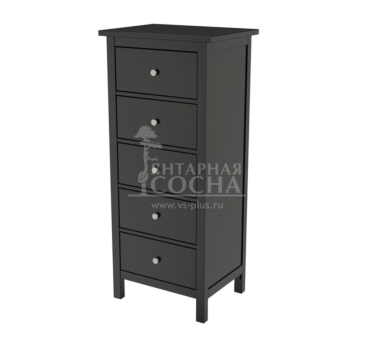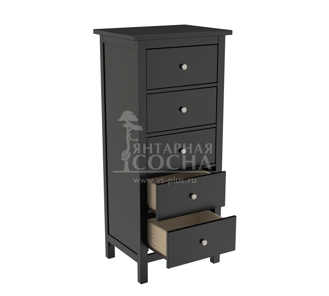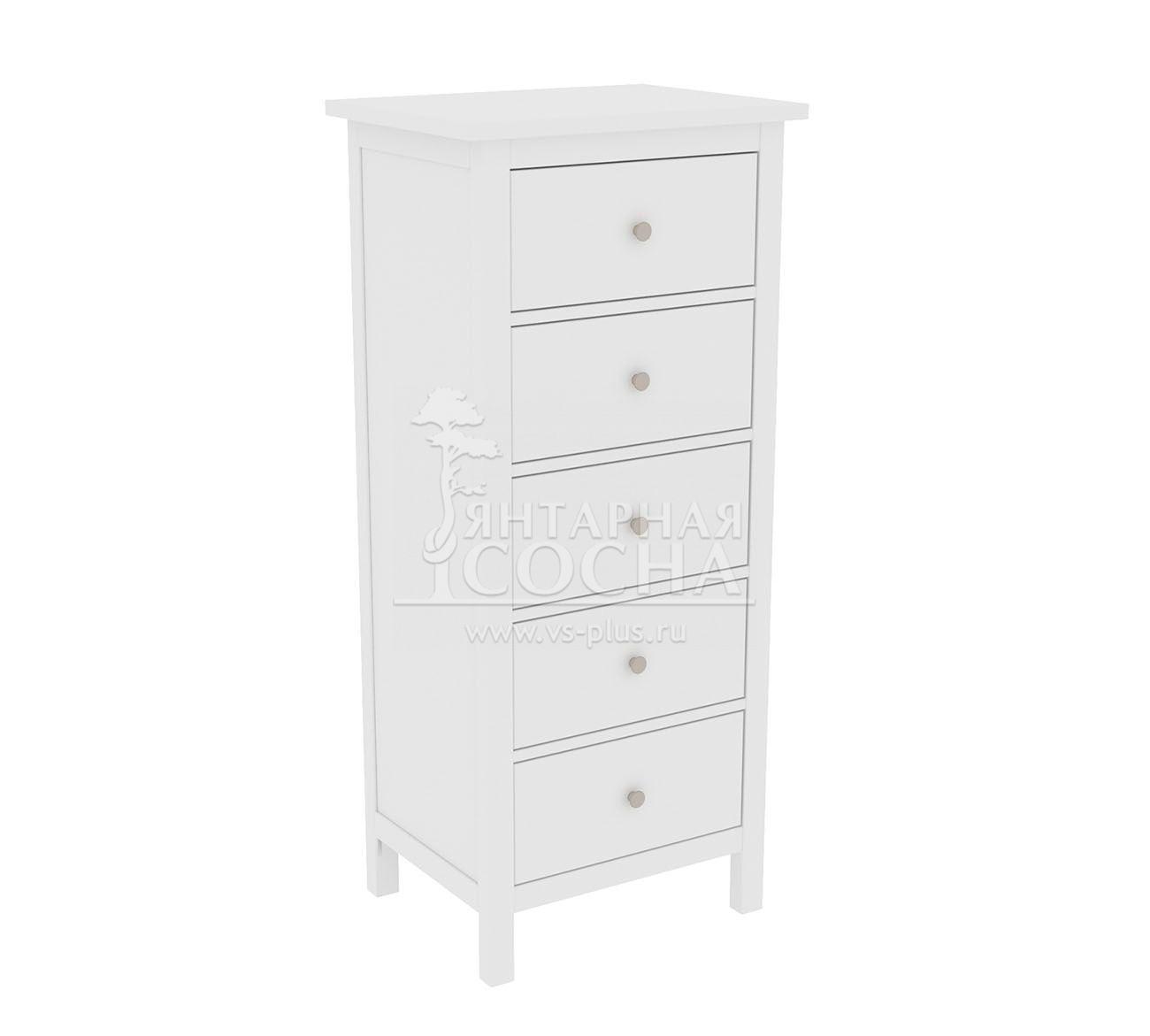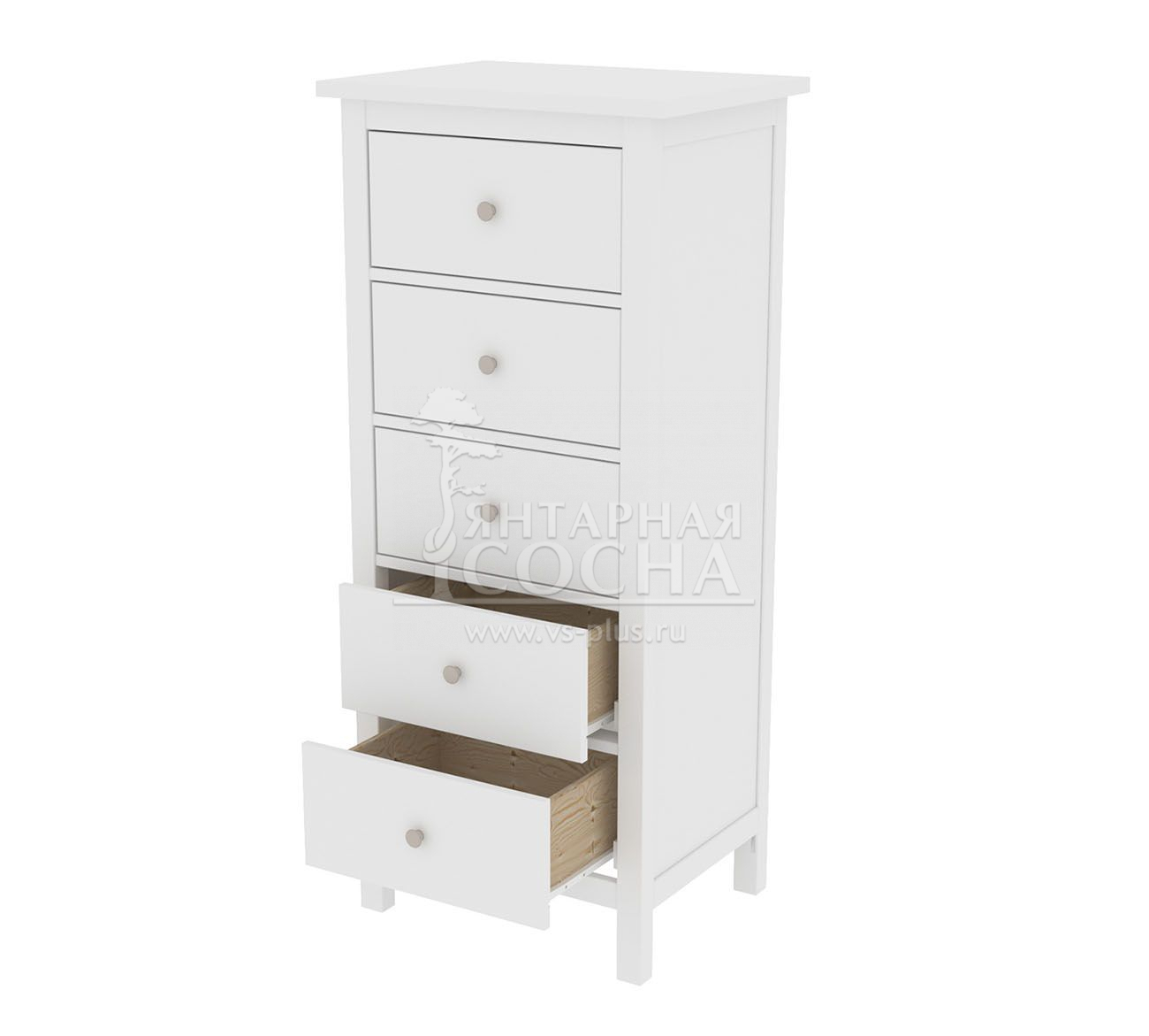 Комод оснащен пятью ящиками. Направляющие на ящиках роликовые. Высокие ножки обеспечивают оптимальный доступ при уборке.