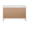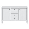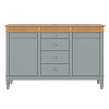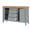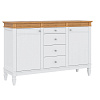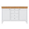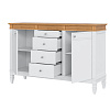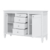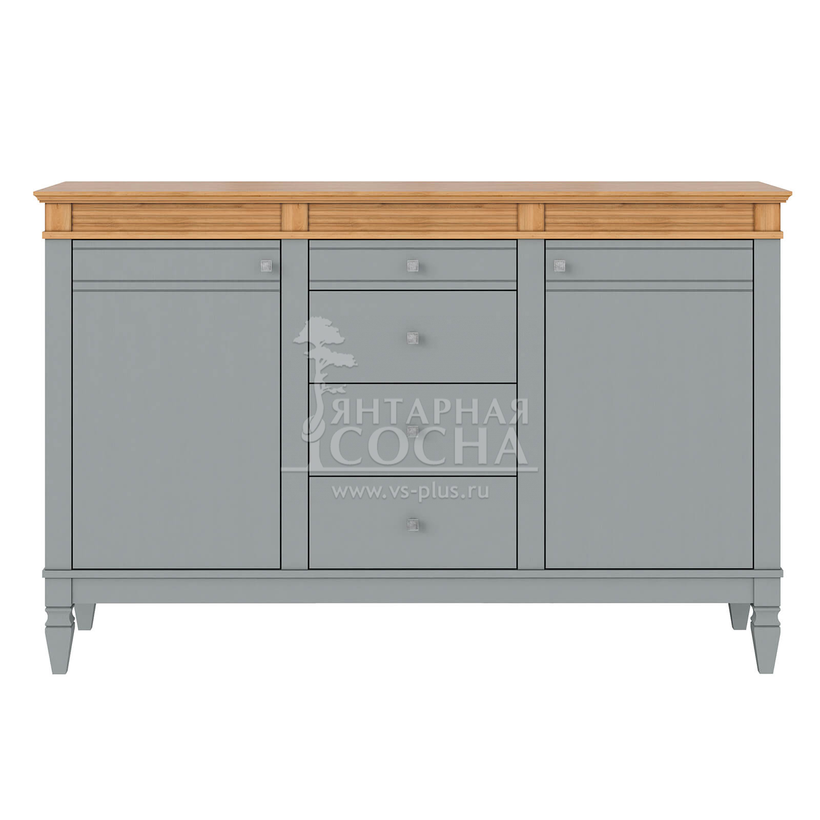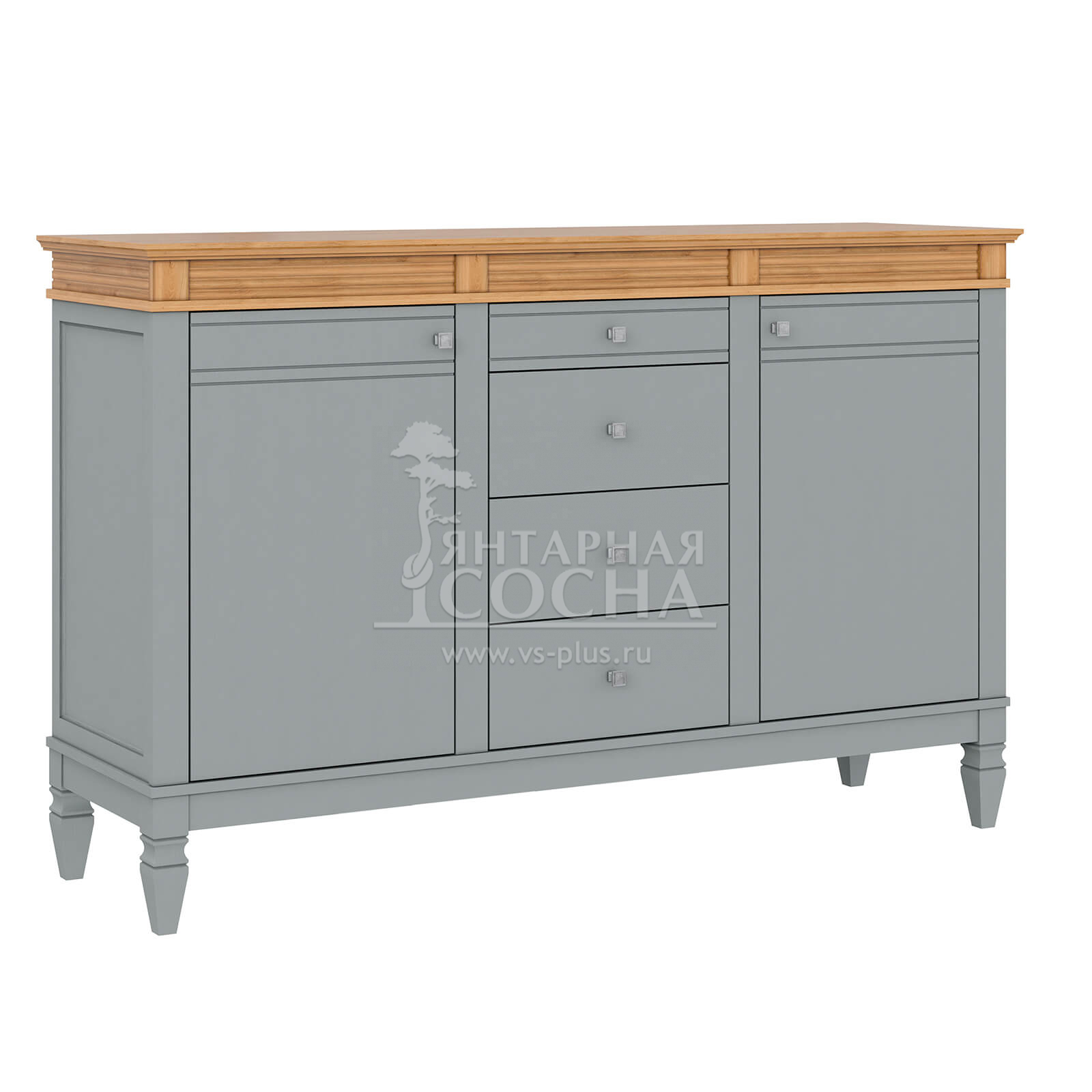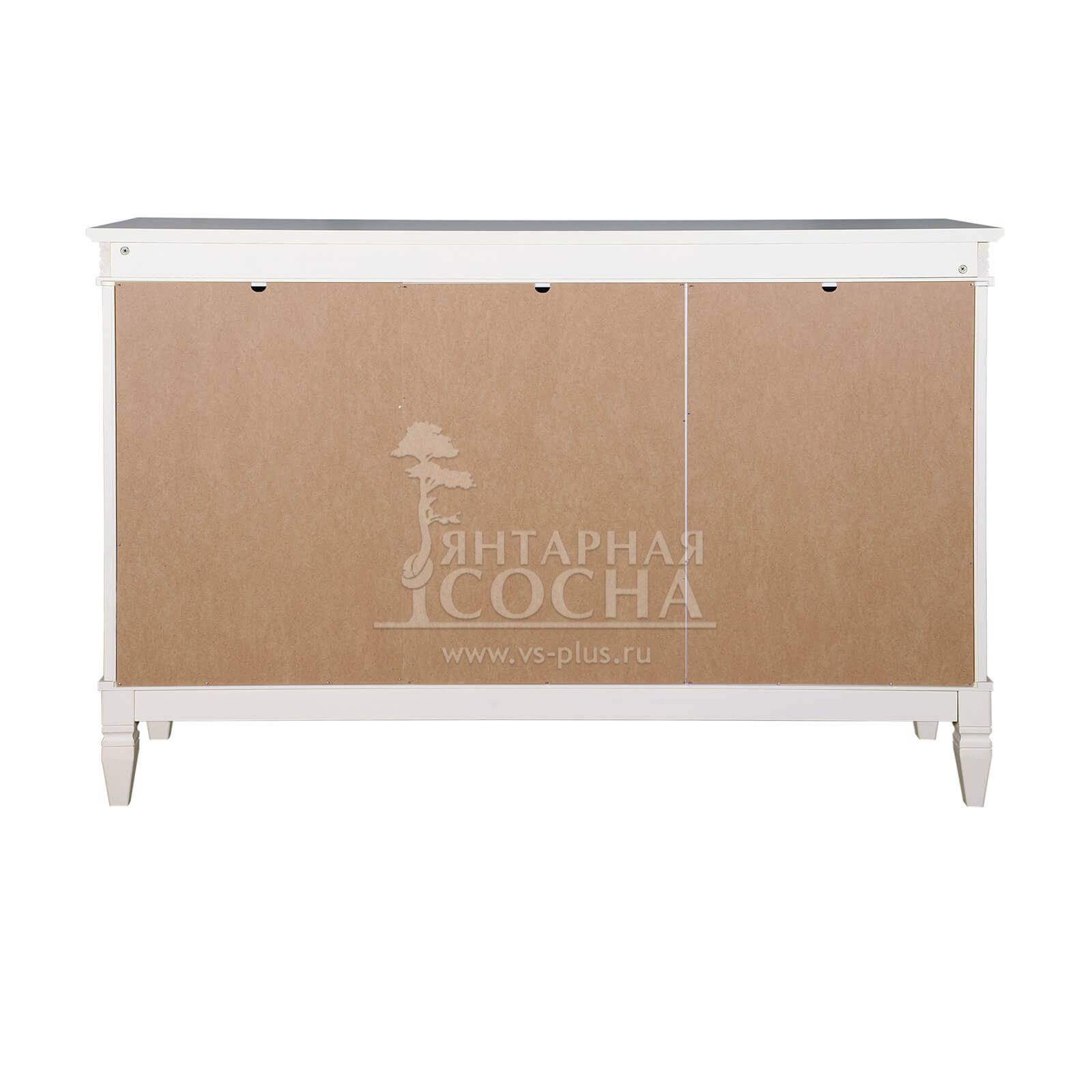 Комод оснащен двумя распашными дверками с полками внутри и четырьмя ящиками. Фурнитура на дверях и ящиках с доводчиками. Высокие ножки обеспечивают оптимальный доступ при уборке.
