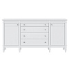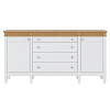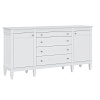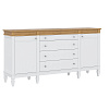 Комод оснащен двумя распашными дверками с полками внутри и четырьмя широкими ящиками. Фурнитура на дверях и ящиках с доводчиками. Высокие ножки обеспечивают оптимальный доступ при уборке.