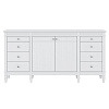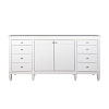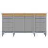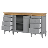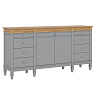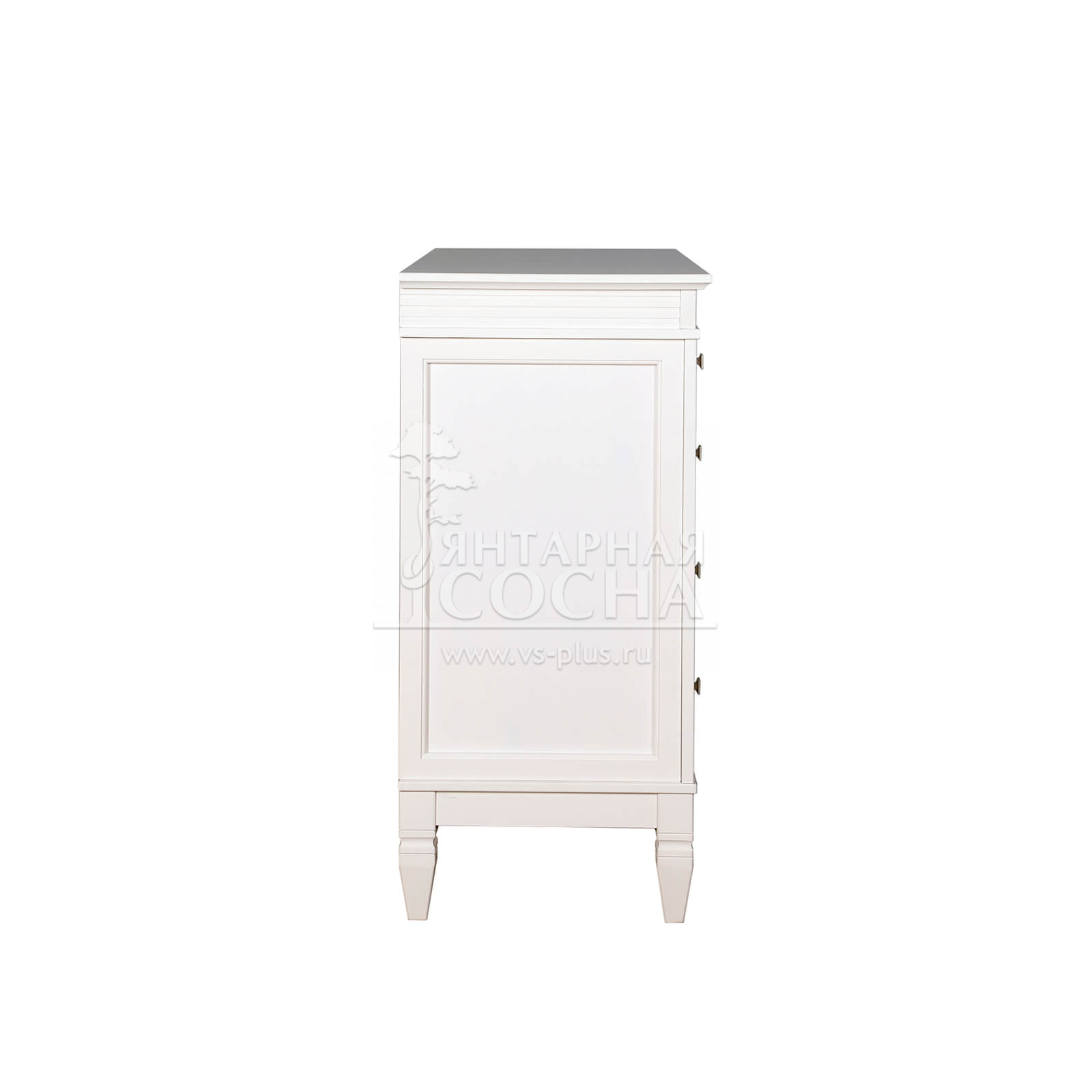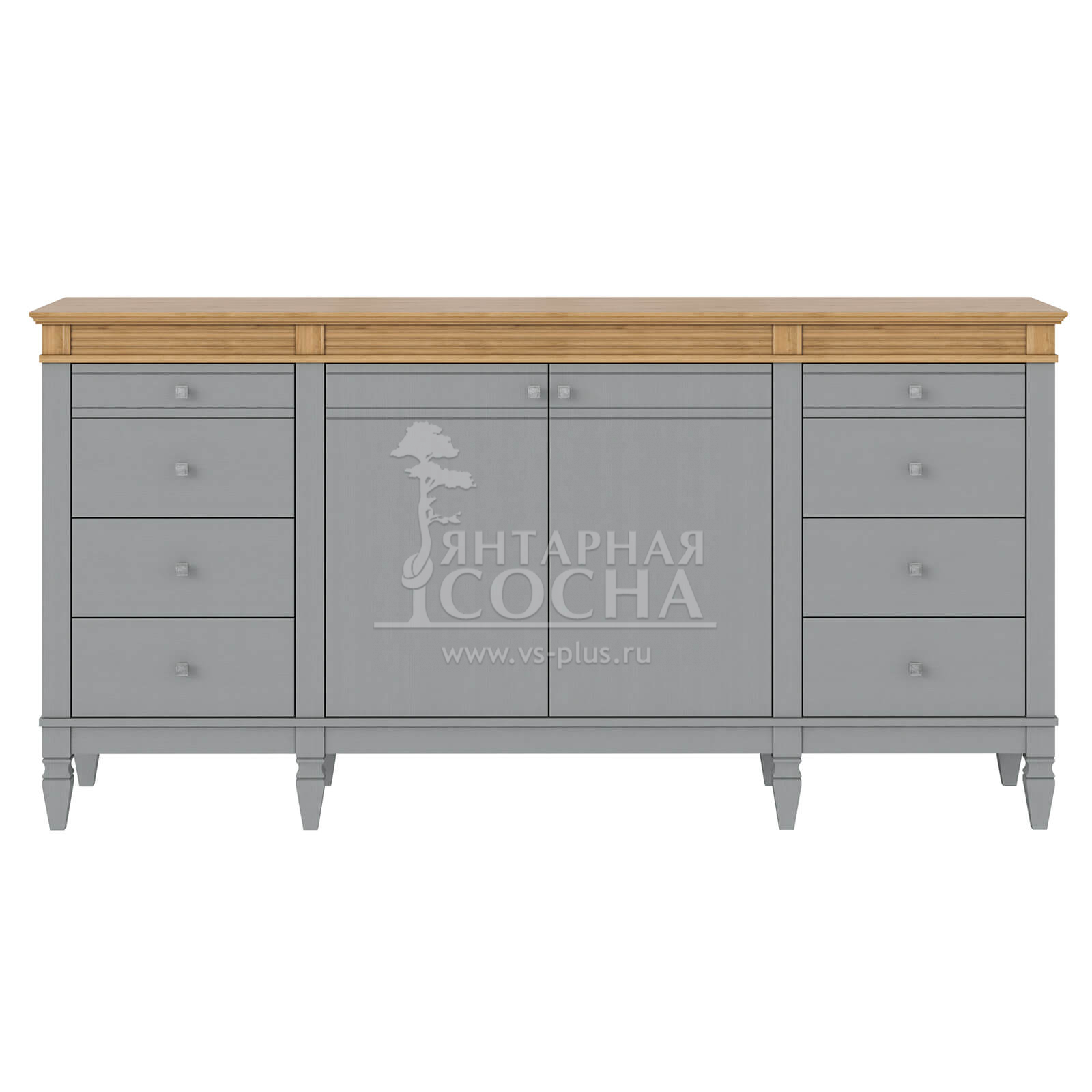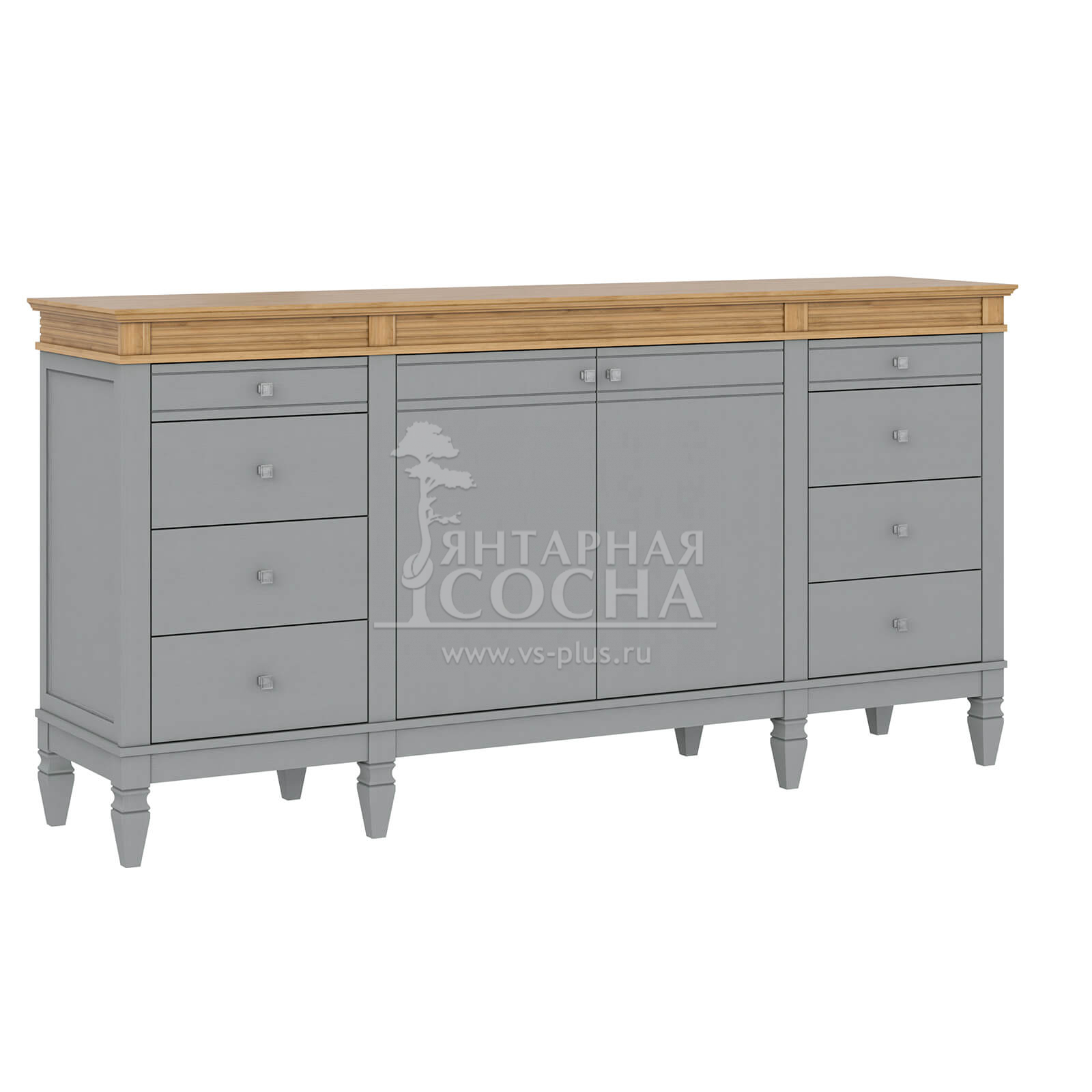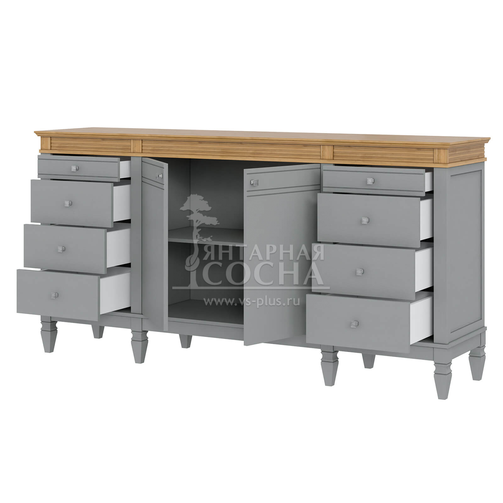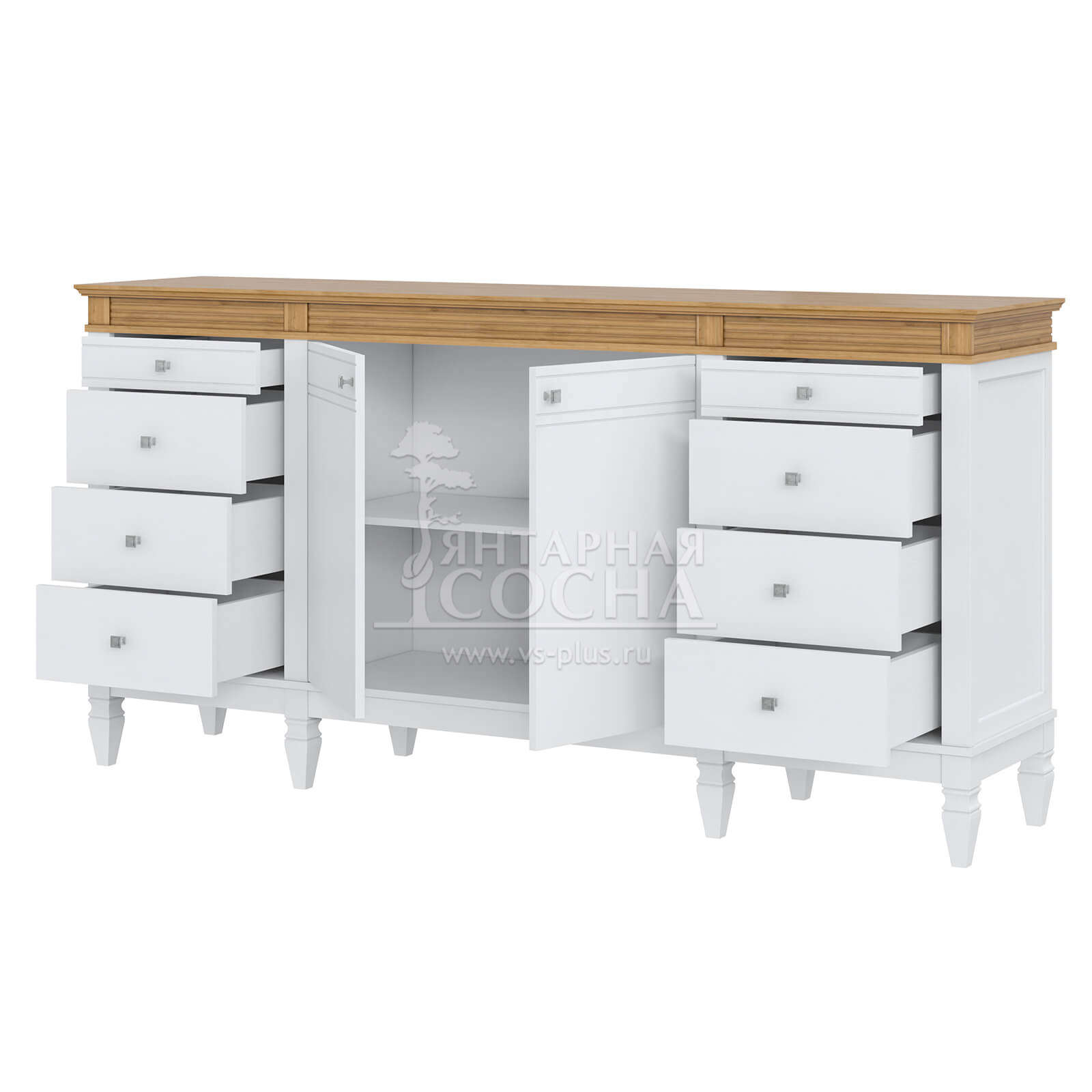 Комод оснащен двумя распашными дверками с полками внутри и восемью ящиками. Фурнитура на дверях и ящиках с доводчиками. Высокие ножки обеспечивают оптимальный доступ при уборке.