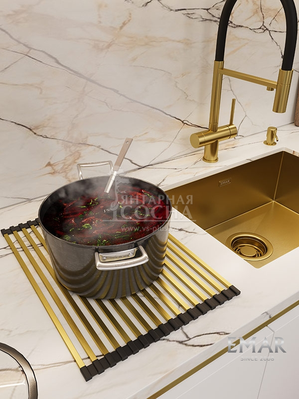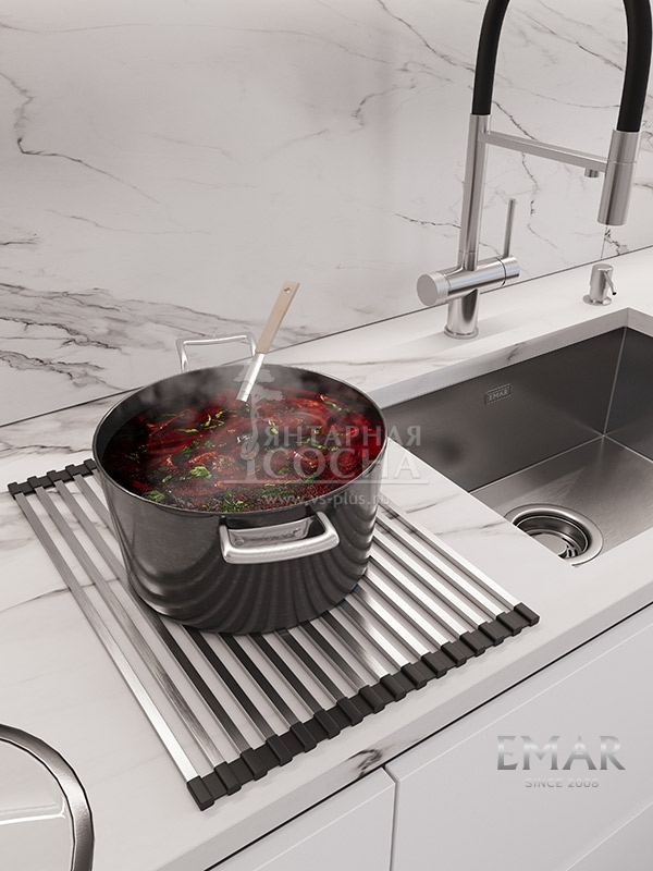 Стильный и практичный кухонный аксессуар, который расстилается на мойке или на столешнице. Ролл-мат удобно использовать для сушки овощей и посуды, а также для размещения горячих кастрюль и сковородок.