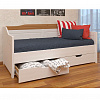 Кровать-диван из натурального дерева, выполненная в современном дизайне. Подойдет для любого интерьера детской комнаты, решив задачу организации пространства даже при небольшой площади.