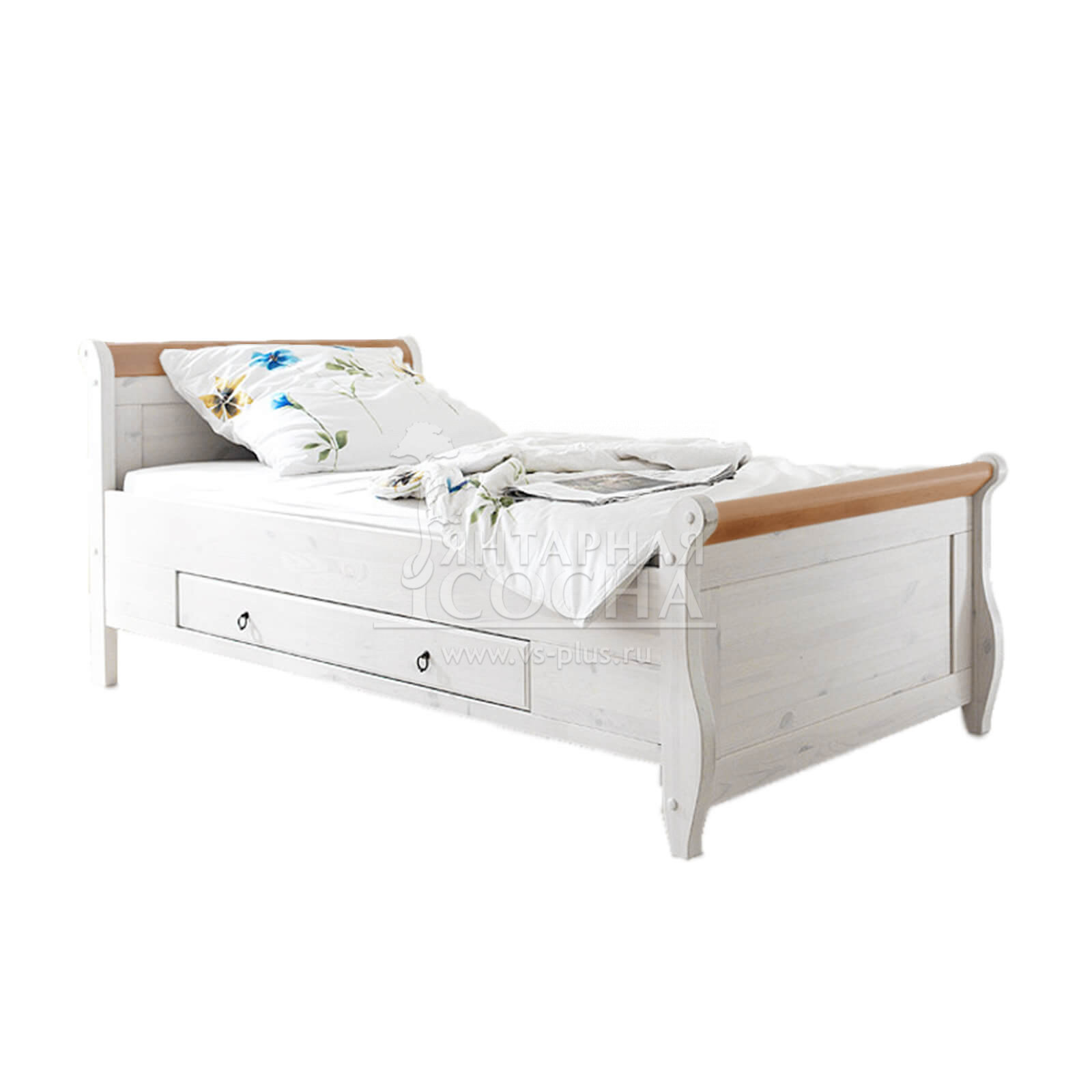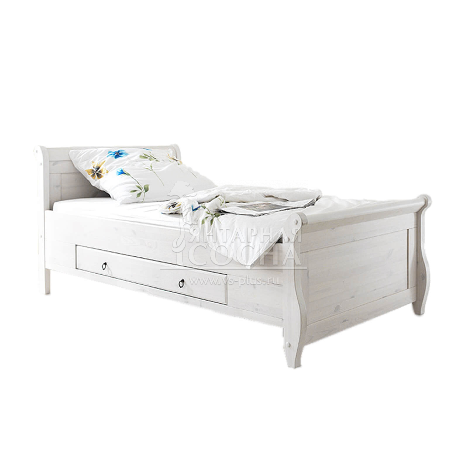 Кровать изготовлена из массива сосны - самого надежного и долговечного природного материала. * Основание под матрас в стоимость кровати не входит, приобретается отдельно.
