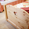 Главная особенность модели — декоративные вырезы в форме сердца (♥) на изголовье, добавляющие кровати нежности и очарования. Такая деталь делает изделие особенно подходящим для спальни в романтичном или деревенском стиле.