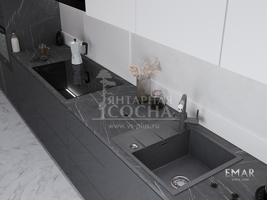 EMAR 1580 QUARTZ — современная модель из кварцевого композита с вместительной чашей и продуманной эргономикой. Подходит для кухонь, где важны прочность, комфорт и аккуратный внешний вид.