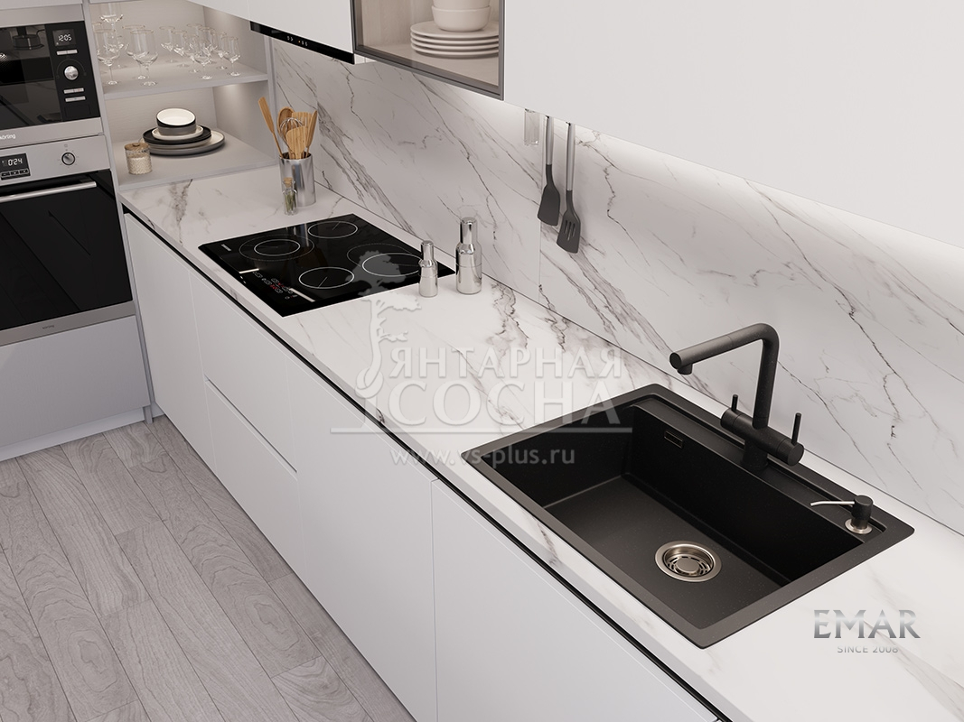 Кухонная мойка EMAR 1640 QUARTZ изготовлена из прочного кварцевого композита: