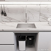 Смещённый слив обеспечивает более эффективное использование рабочей поверхности и увеличивает свободное пространство под мойкой для размещения сифона, фильтра или измельчителя.