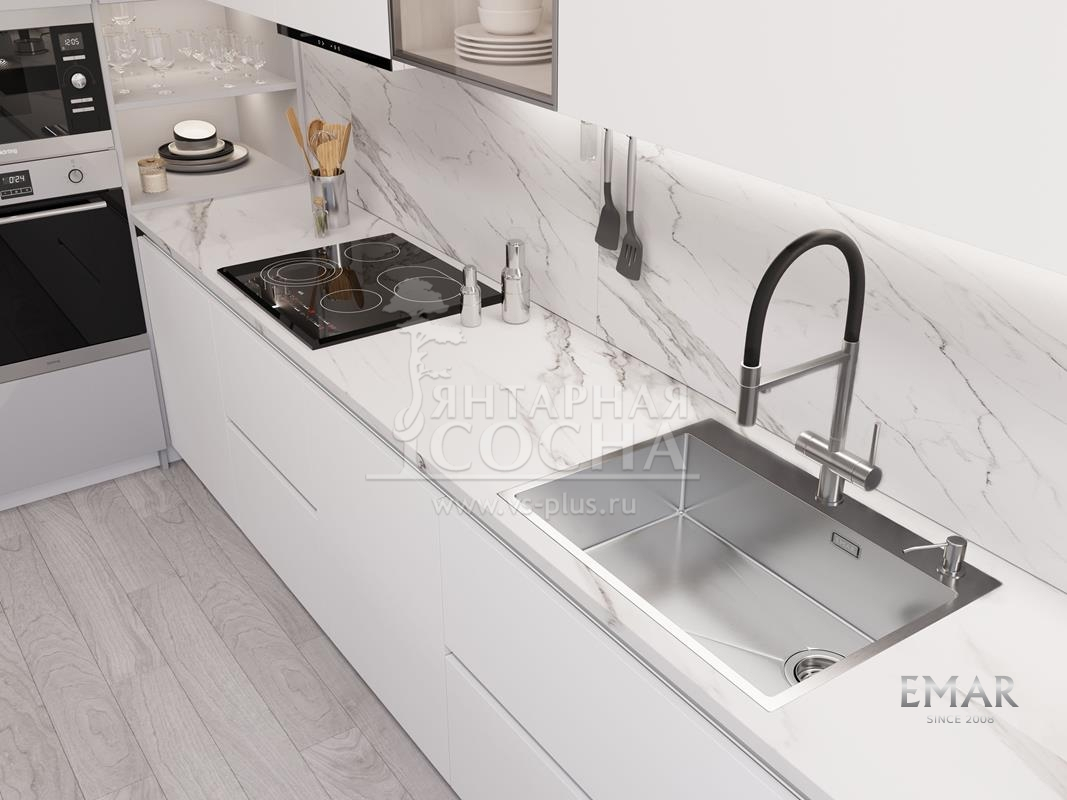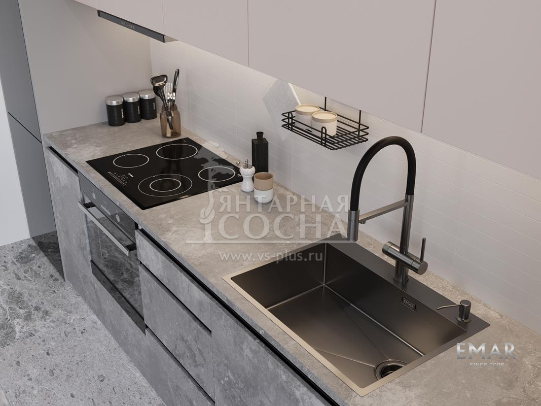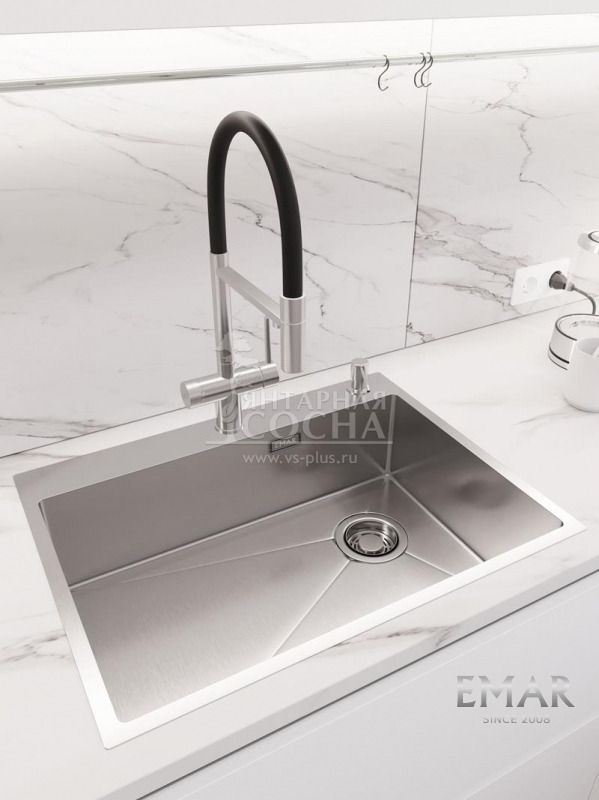 Кухонная мойка EMAR 660 (TOP) выполнена из прочной нержавеющей стали с современным PVD-покрытием, обеспечивающим высокую износостойкость и эстетичный внешний вид.
