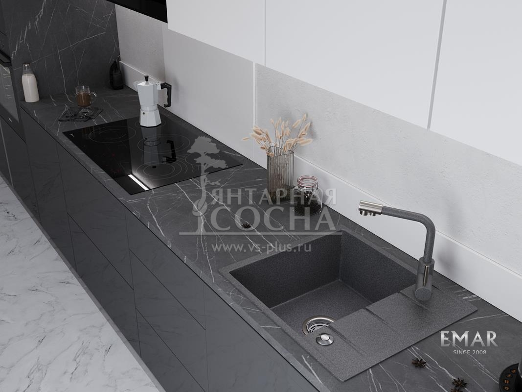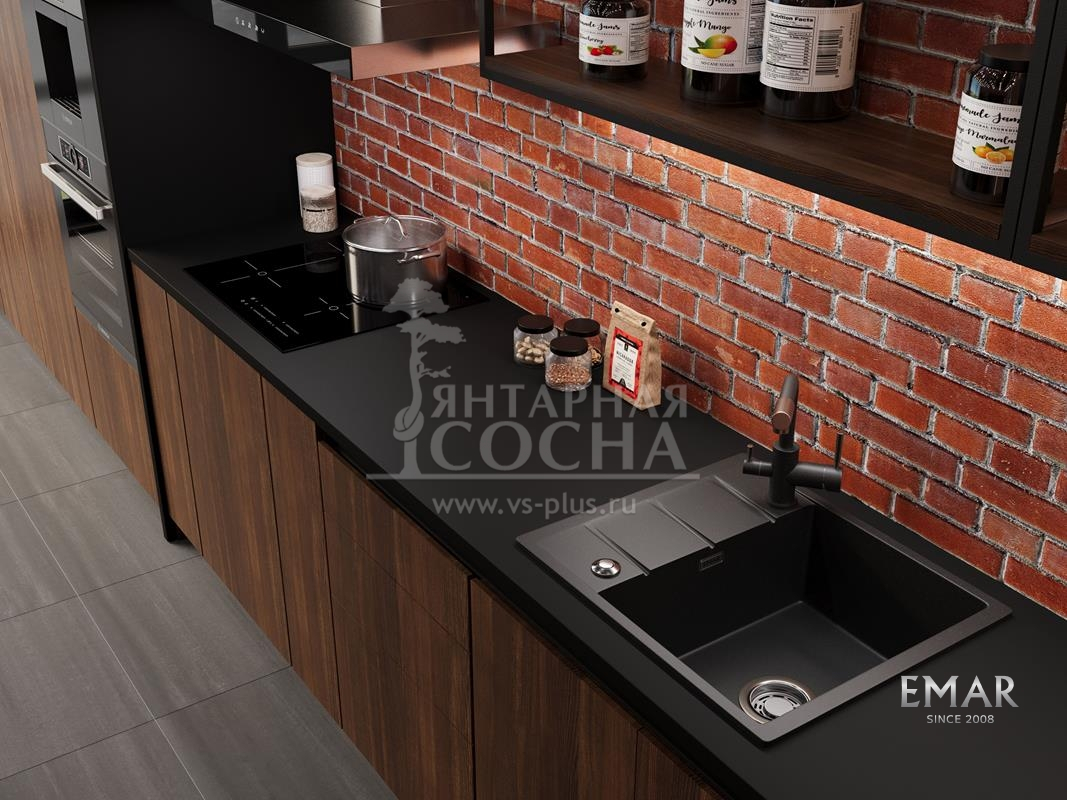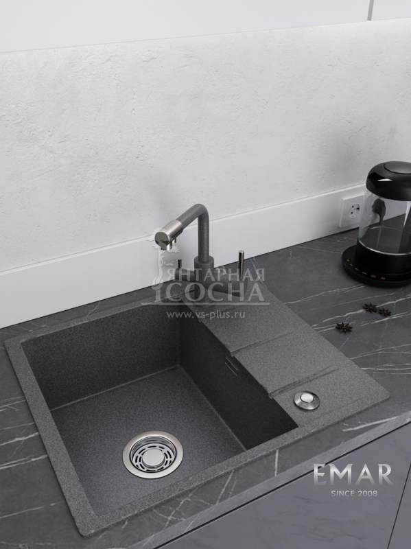Оригинальная мойка EMAR EMQ-1800.Q с удобным крылом. Удобное крыло позволяет хранить различные продукты и кухонные атрибутику. Мойка сделана из кварцевой крошки на всю глубину материала.
