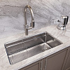 - Сатиновая поверхность, полученная методом брашинга, придает мойке стильный и благородный вид, скрывая незначительные царапины и пятна.