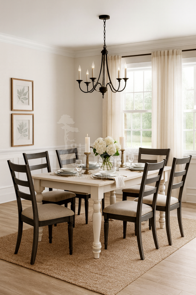 Набор включает обеденный прямоугольный стол и 4 стула из массива сосны. Мебель отличается практичностью и длительным сроком службы. Изделия в классическом исполнении прекрасно дополнят любой интерьер, подчеркнут его изящество и элегантность, позволят всей семье расположиться с максимальным комфортом. Мебель идеально подходит для создания уютной атмосферы и при этом противостоит негативному воздействию влажности и прочих внешних факторов.