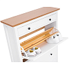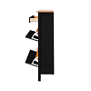 Три вместительных откидных ящика позволяют удобно хранить обувь, защищая её от пыли и визуального беспорядка. Отсутствие задних ножек даёт возможность установить тумбу вплотную к стене, даже при наличии плинтуса, что особенно удобно для компактных прихожих.