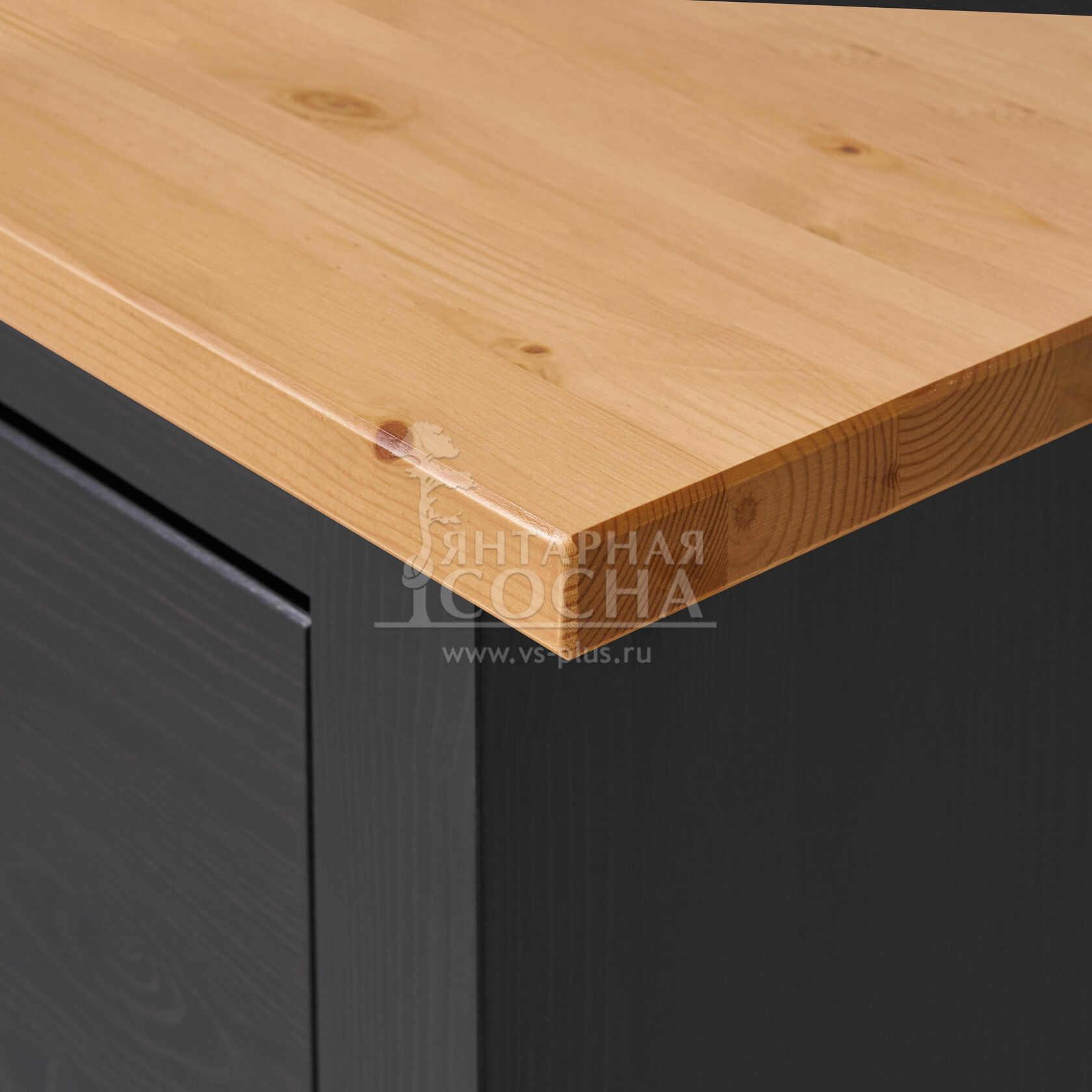 Материал стола — прочный и долговечный массив сосны. Матовое покрытие выполнено с использованием красителей на водной основе и лака на основе акриловых смол с УФ-отверждением. Оно подчеркивает природную красоту древесины и защищает её от внешних воздействий.