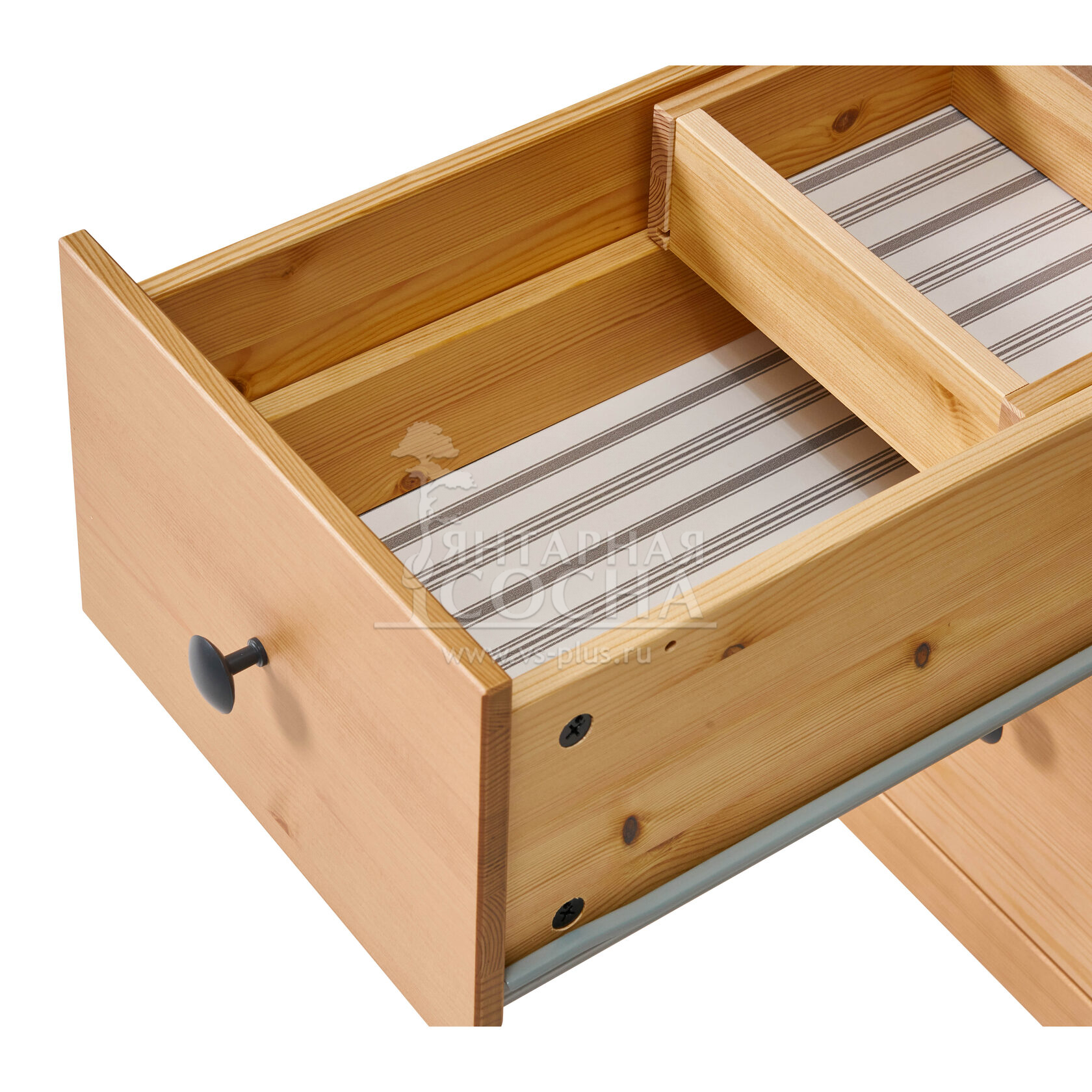 Два вместительных ящика можно установить как с левой, так и с правой стороны от рабочего места. Верхний ящик оснащён дополнительным съёмным деревянным контейнером. Роликовые направляющие обеспечивают плавное выдвижение ящика.