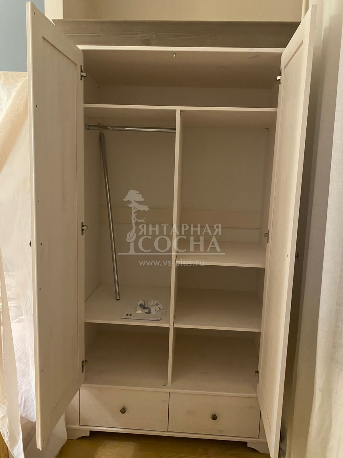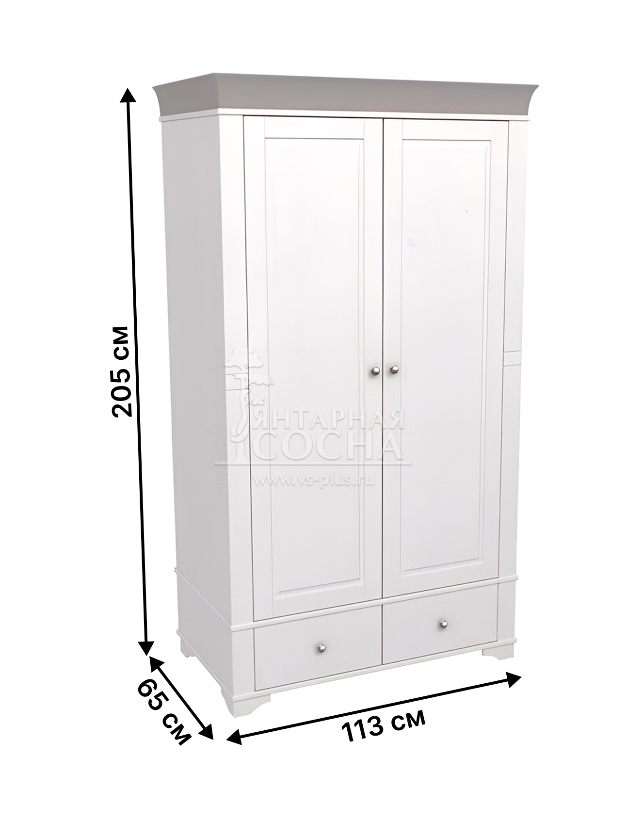 В варианте цвета белый воск/антрацит в серый цвет окрашен карниз шкафа. Для разделения шкафа на отделение с полками и отделение со штангой можно приобрести встраиваемые полки.